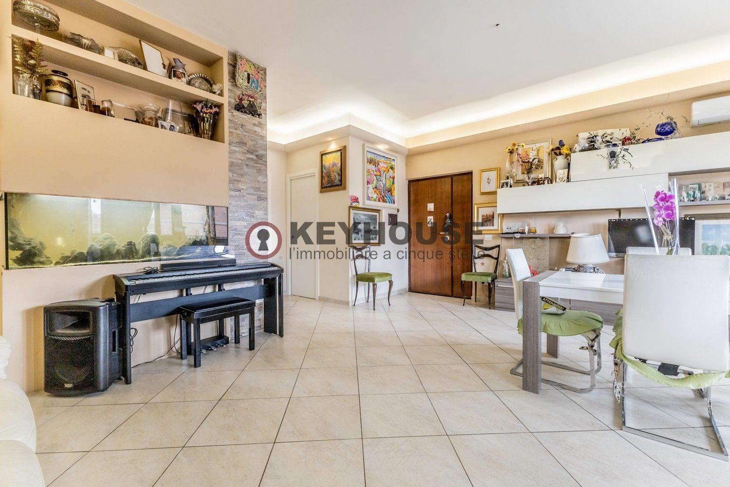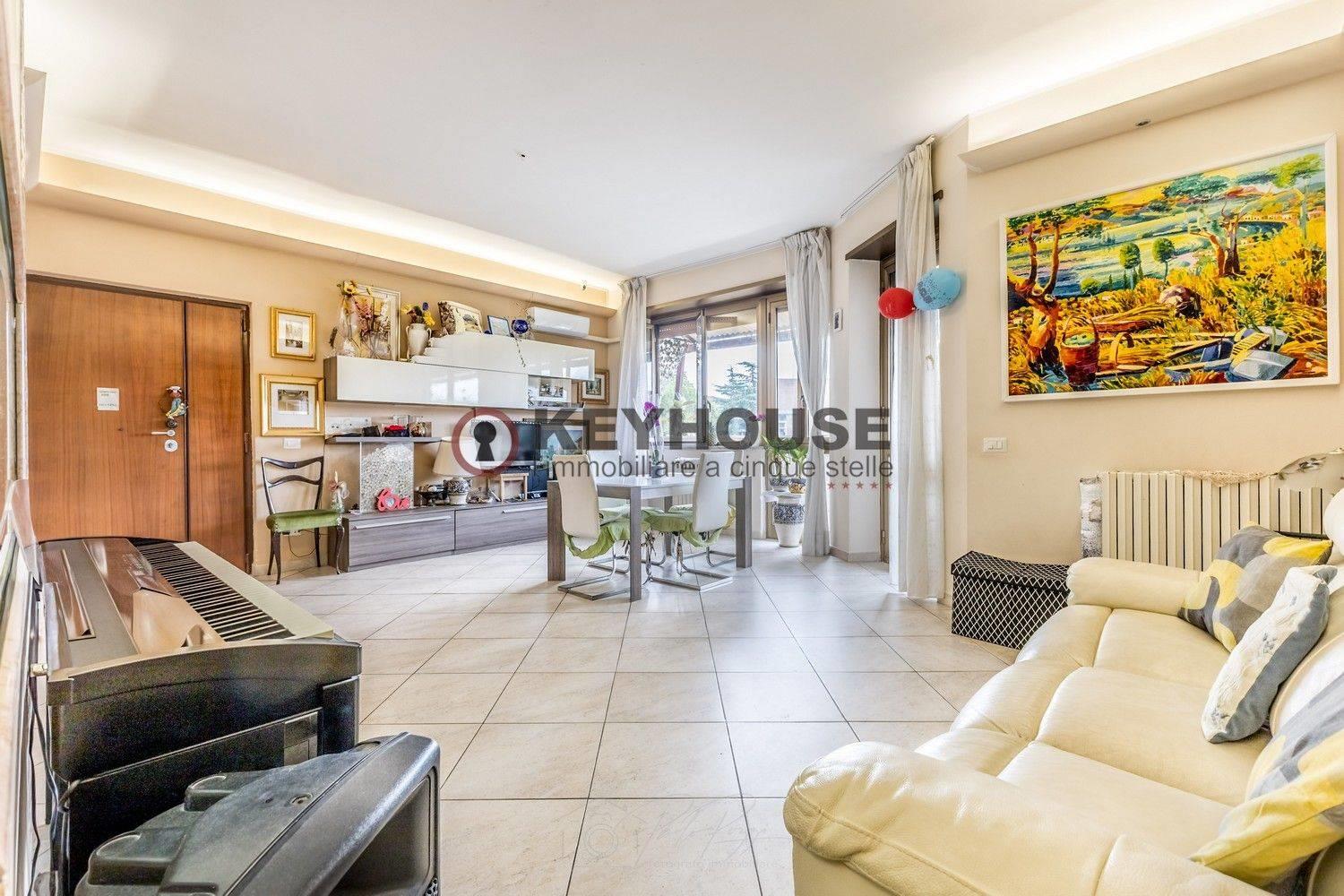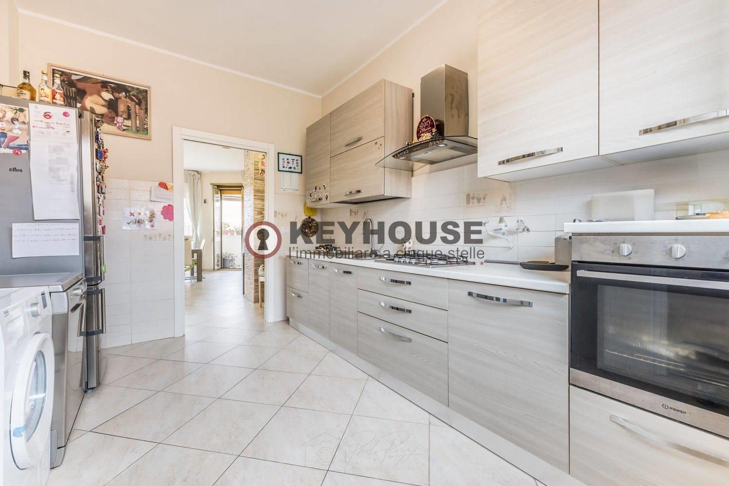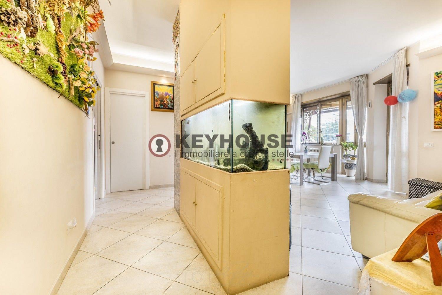 KEYHOUSE ROME - EUR DECIMA: In a 1960s brick building, we offer for sale a fourth-floor apartment, completely renovated in 2018, comprising an entrance hall, living room, three bedrooms, an eat-in kitchen, 2 bathrooms, a storage room, and a spacious balcony. A useful attic completes the property. The area is well-served by both shops and public transportation, and the property is also close to schools, parks, and sports centers. €349,000.00 (Ref. 25/25).