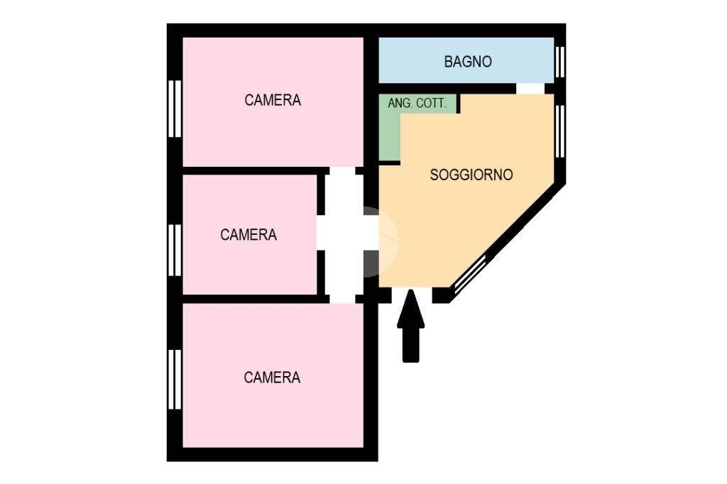 L'immobile è composto da: ingresso, soggiorno con angolo cottura, tre comode camere da letto e servizio finestrato.