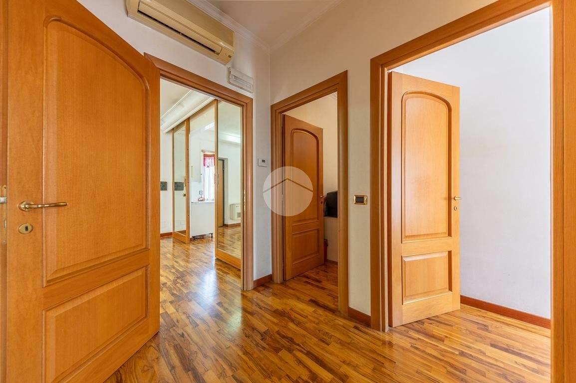 salone, cucina abitabile con vetrata a scomparsa, 3 camere da letto, 2 bagni di cui uno in camera e 2 balconi.
