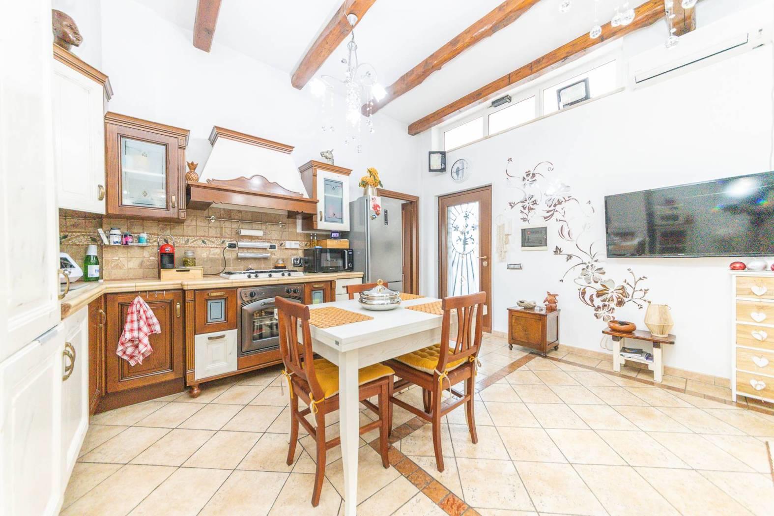 L'immobile, in perfetto stato interno, presenta: impianto termoautonomo, porta blindata, persiane in ferro antiscasso, impianto di allarme, serrande elettriche, impianto di aria condizionata, travi soffitto in legno, porfido nel giardino, cancello carrabile automatico.