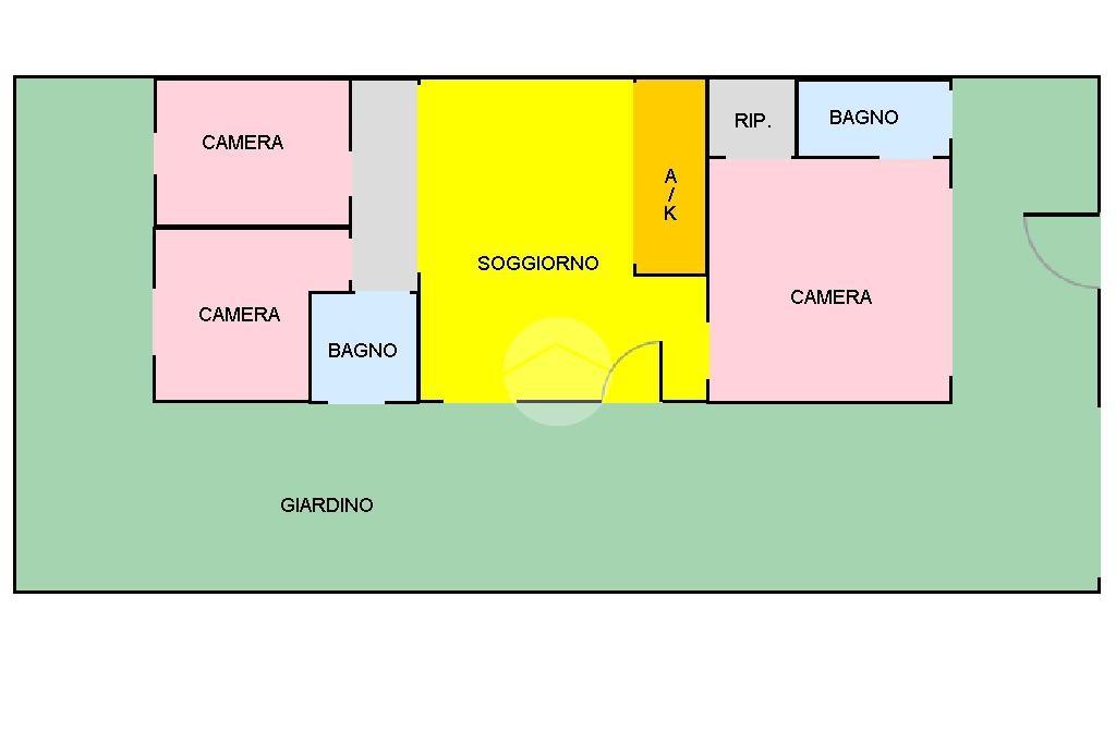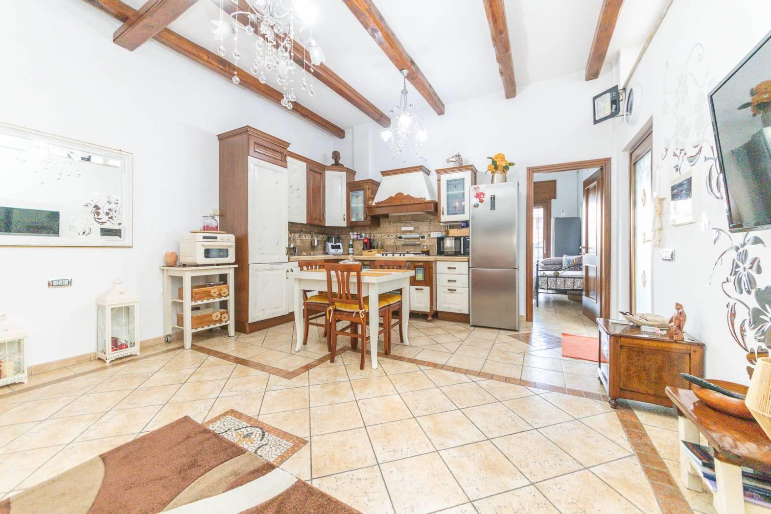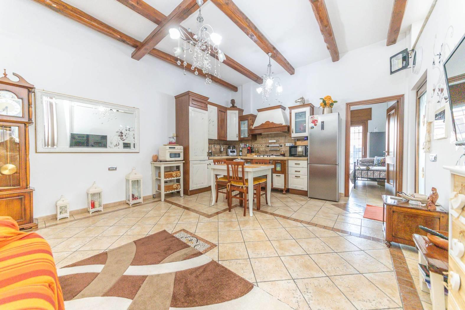 L'immobile è composto da: Salone con cucina a vista, 2 camere da letto, ampia camera con zona soppalcata calpestabile e e bagno privato, giardino mattonato perimetrale, con accesso carrabile, di circa 200mq.