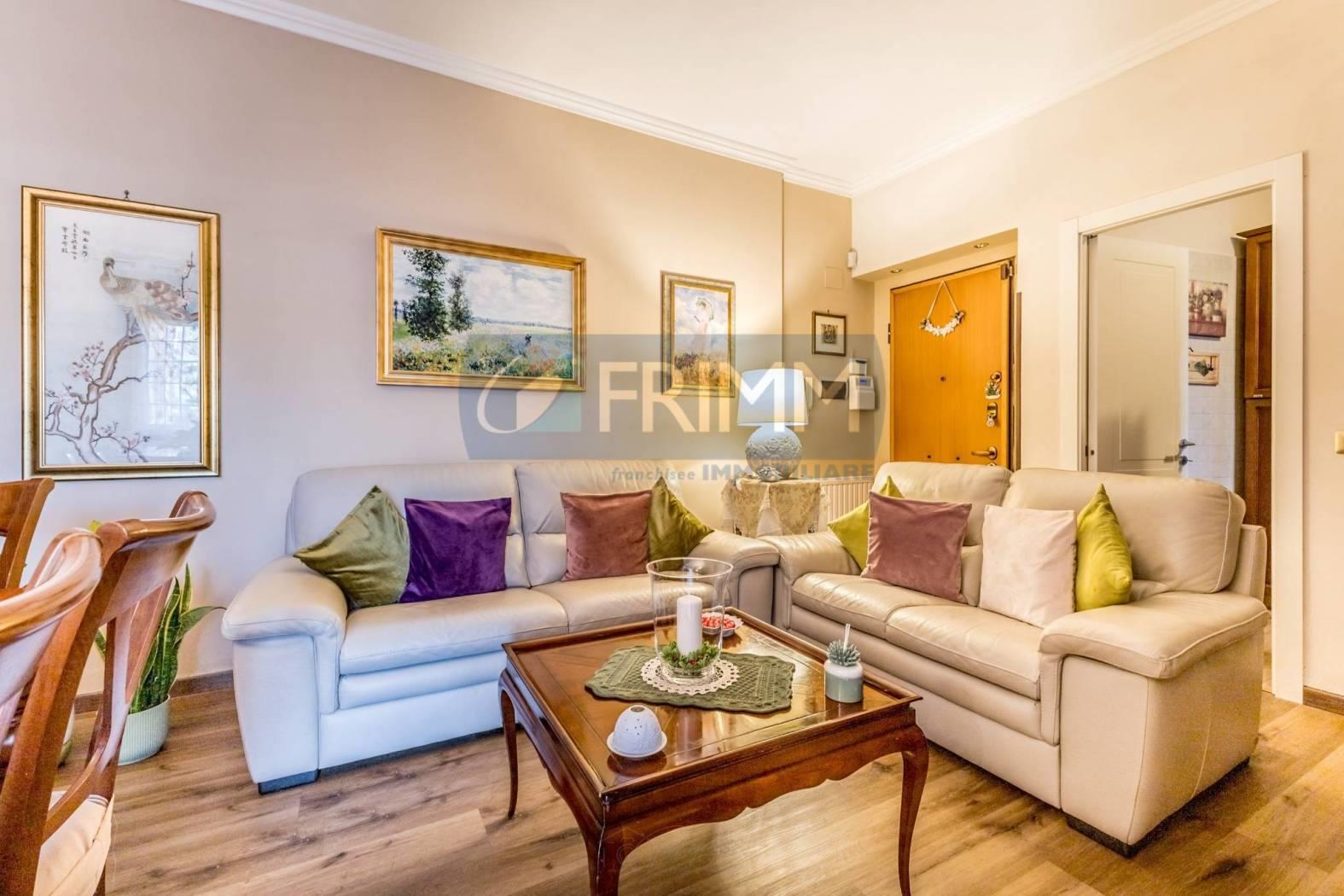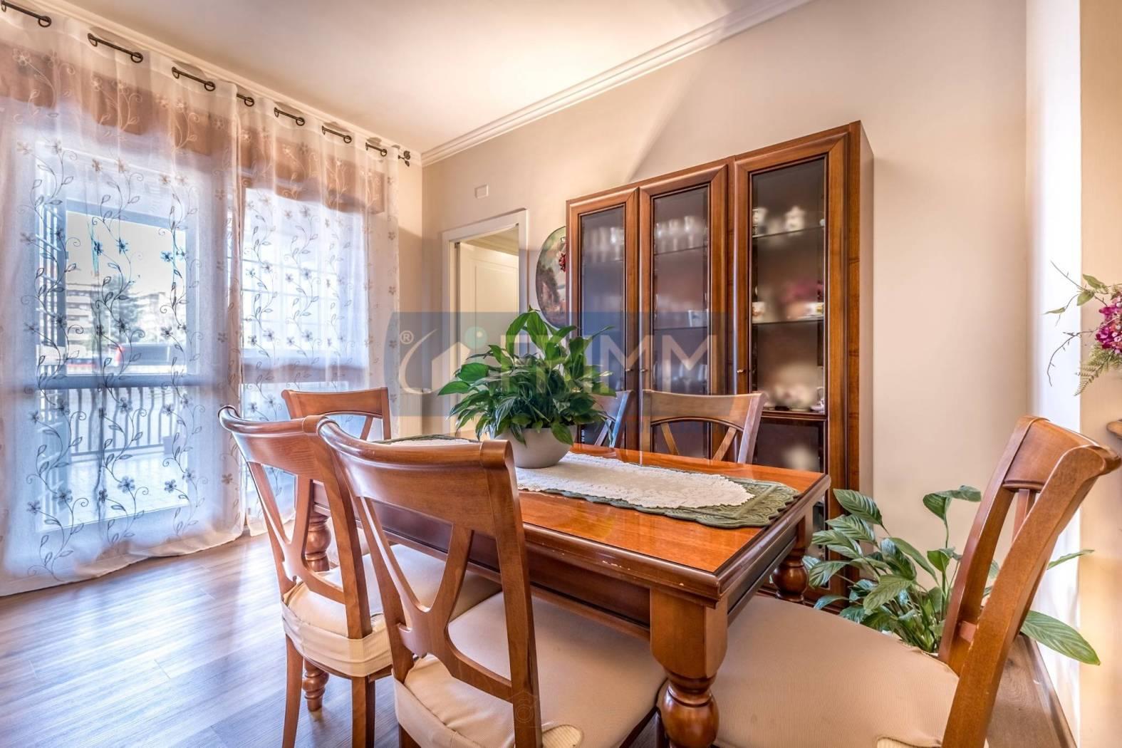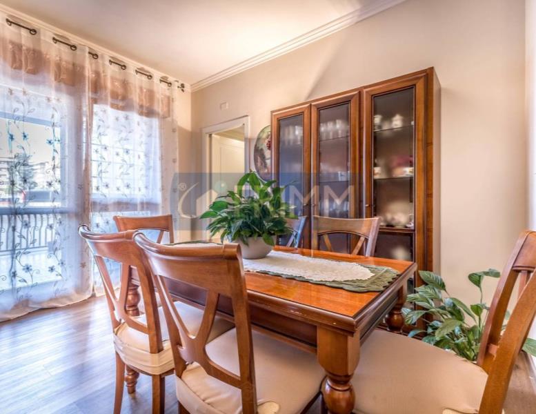 L’appartamento è composto da ingresso su salone, cucina, camera matrimoniale, due camerette, doppi servizi finestrati e terrazzo, completa la proprietà un ampio posto auto nel garage condominiale collegato da ascensore. Internamente si presenta in buono stato di manutenzione, termo autonomo, condizionatori, grate anti-intrusione, zanzariere, porta blindata. Ampia area verde condominiale ben curata.