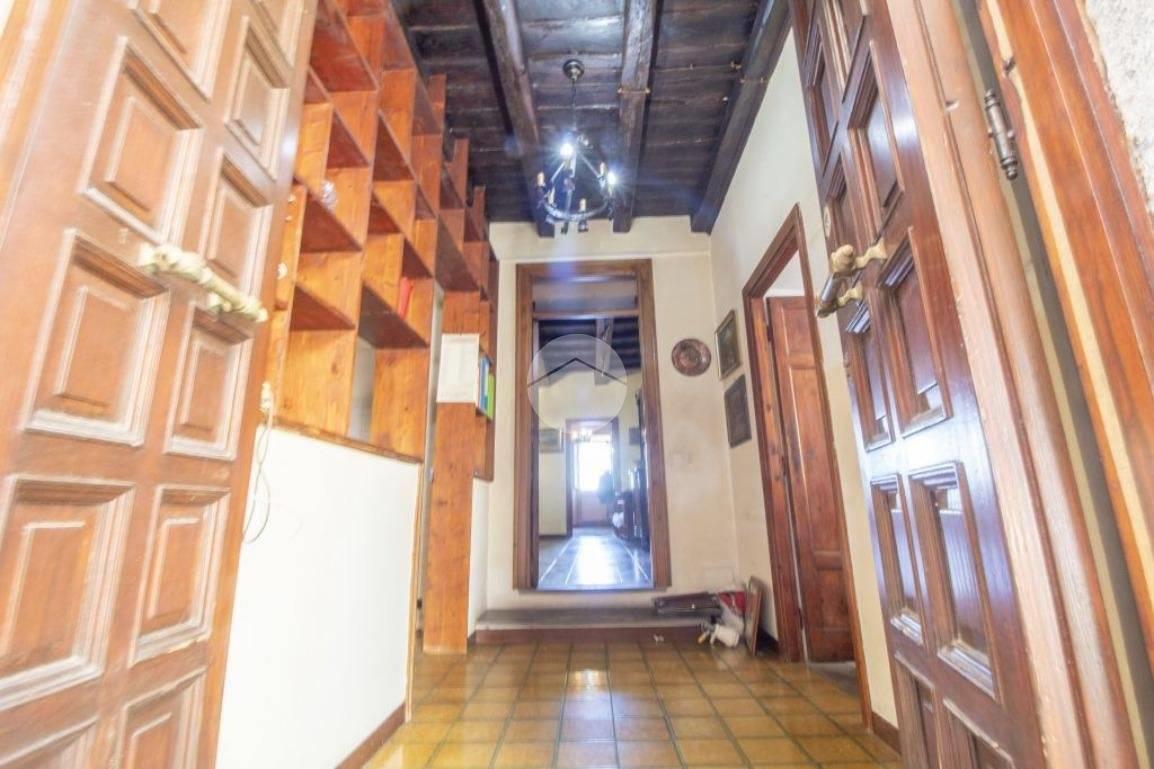 Proseguendo si accede al grande salone, di grande impatto scenografico e cuore della casa, caratterizzato da soffitto in legno con travi a vista e camino conferendo autenticità all’ambiente. Elemento distintivo di questo spazio è il balcone a forma di nicchia, che affaccia sui suggestivi scorci del vicolo storico.