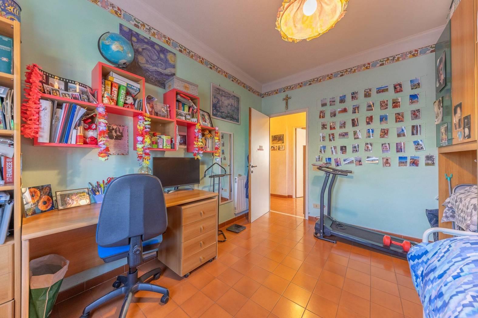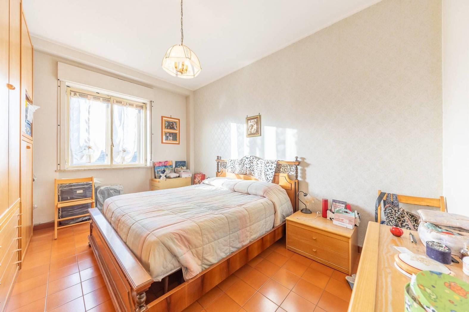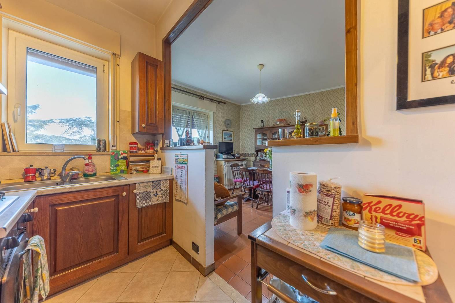 MENTANA. Ampio appartamento posto in zona tranquilla e con vista panoramica ed aperta sulla vallata. L'immobile è posto al terzo piano di una palazzina sprovvista di ascensore, ed è così composto: ampio ingresso, sala da pranzo con camino, cucina a vista e terrazzino, salone doppio con affaccio su un ulteriore balcone panoramico, corridoio con piccolo soppalco per accedere alla zona notte ove troviamo due camere matrimoniali, doppi servizi e ripostiglio. Nell'appartamento è possibile ricavare una terza camera da letto e quindi trasformare l'immobile in quadrilocale (come era in precedenza). A completare il tutto, un posto auto scoperto, cantina e box di 16 mq.