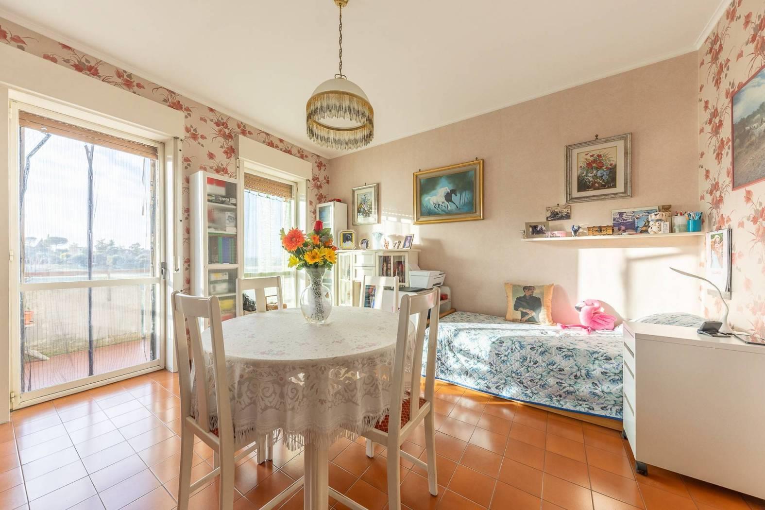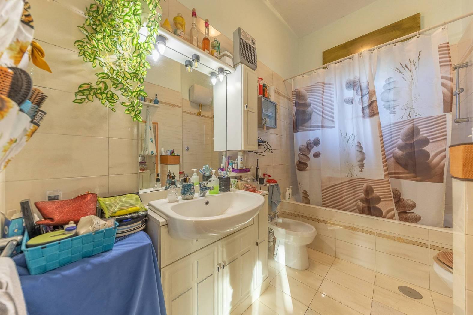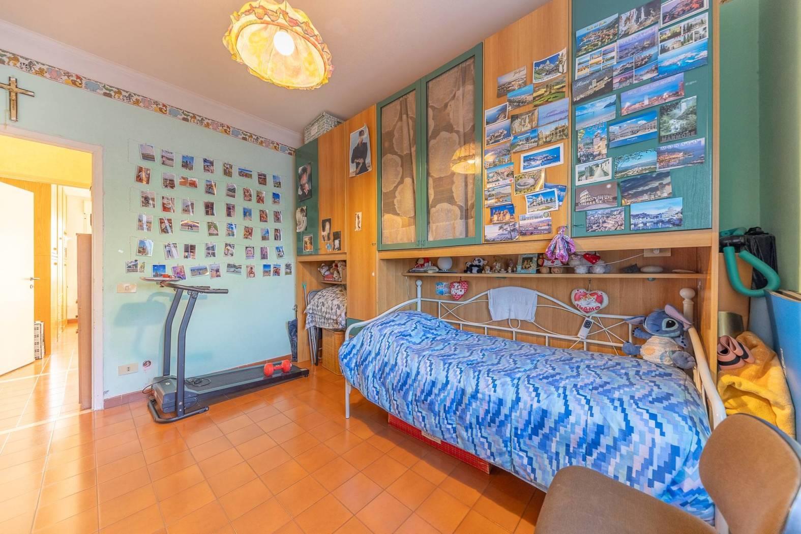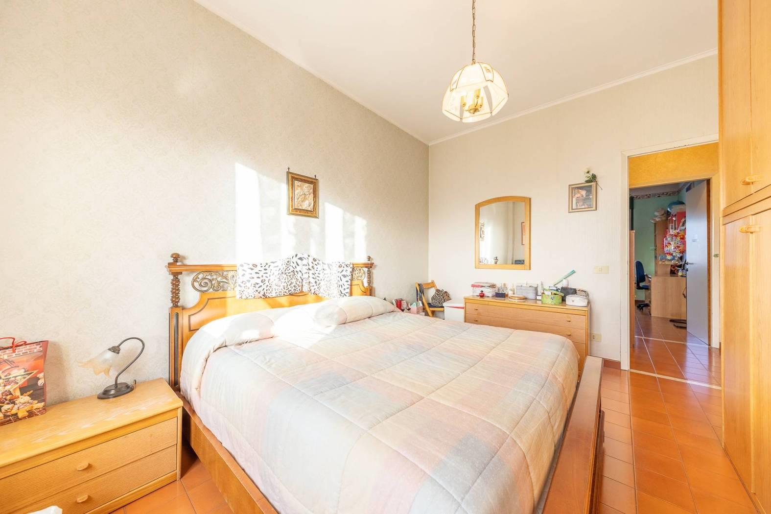 MENTANA. Ampio appartamento posto in zona tranquilla e con vista panoramica ed aperta sulla vallata. L'immobile è posto al terzo piano di una palazzina sprovvista di ascensore, ed è così composto: ampio ingresso, sala da pranzo con camino, cucina a vista e terrazzino, salone doppio con affaccio su un ulteriore balcone panoramico, corridoio con piccolo soppalco per accedere alla zona notte ove troviamo due camere matrimoniali, doppi servizi e ripostiglio. Nell'appartamento è possibile ricavare una terza camera da letto e quindi trasformare l'immobile in quadrilocale (come era in precedenza). A completare il tutto, un posto auto scoperto, cantina e box di 16 mq.