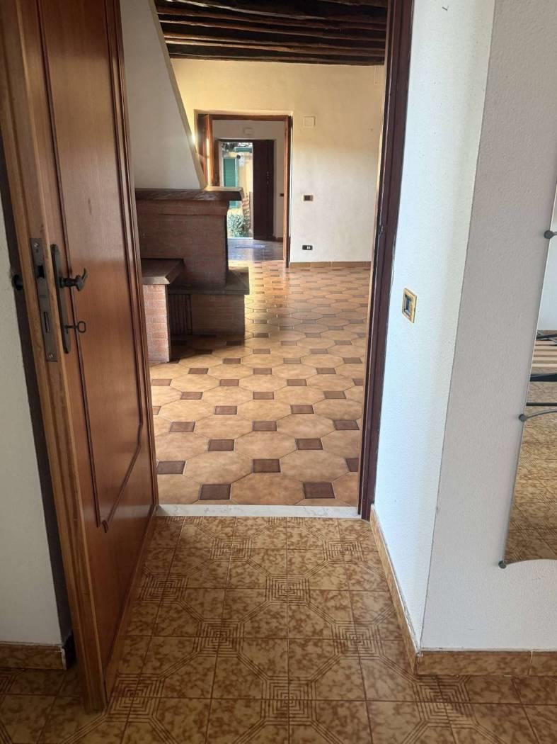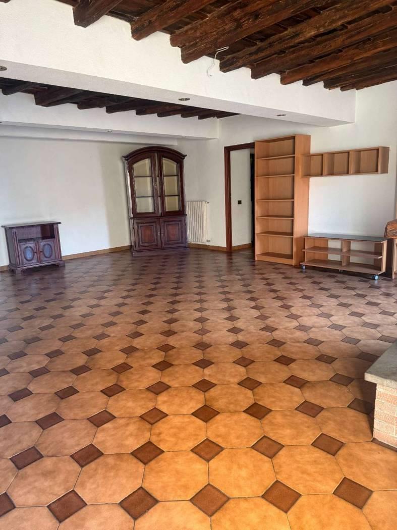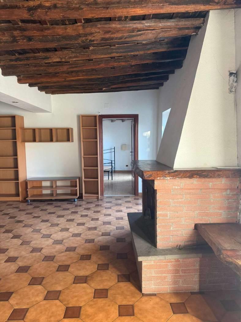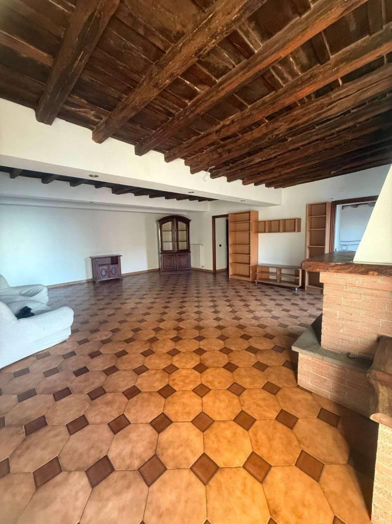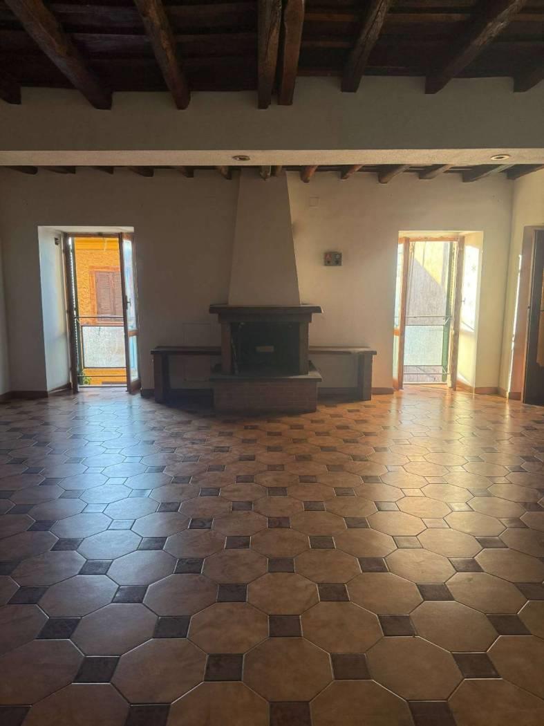 Possiede una metratura generosa ed e' composto da salone doppio con camino, tre camere ,cucina abitabile, bagno , i soffitti sono tutti con travi in legno a vista in ottime condizioni.