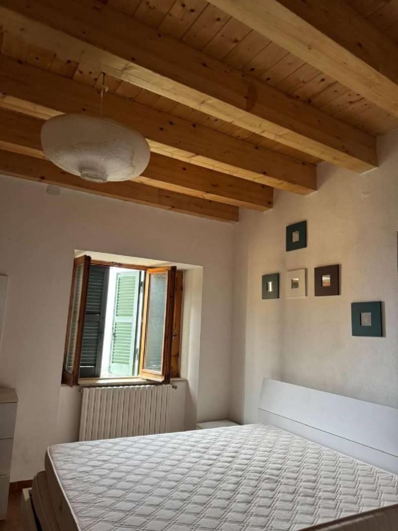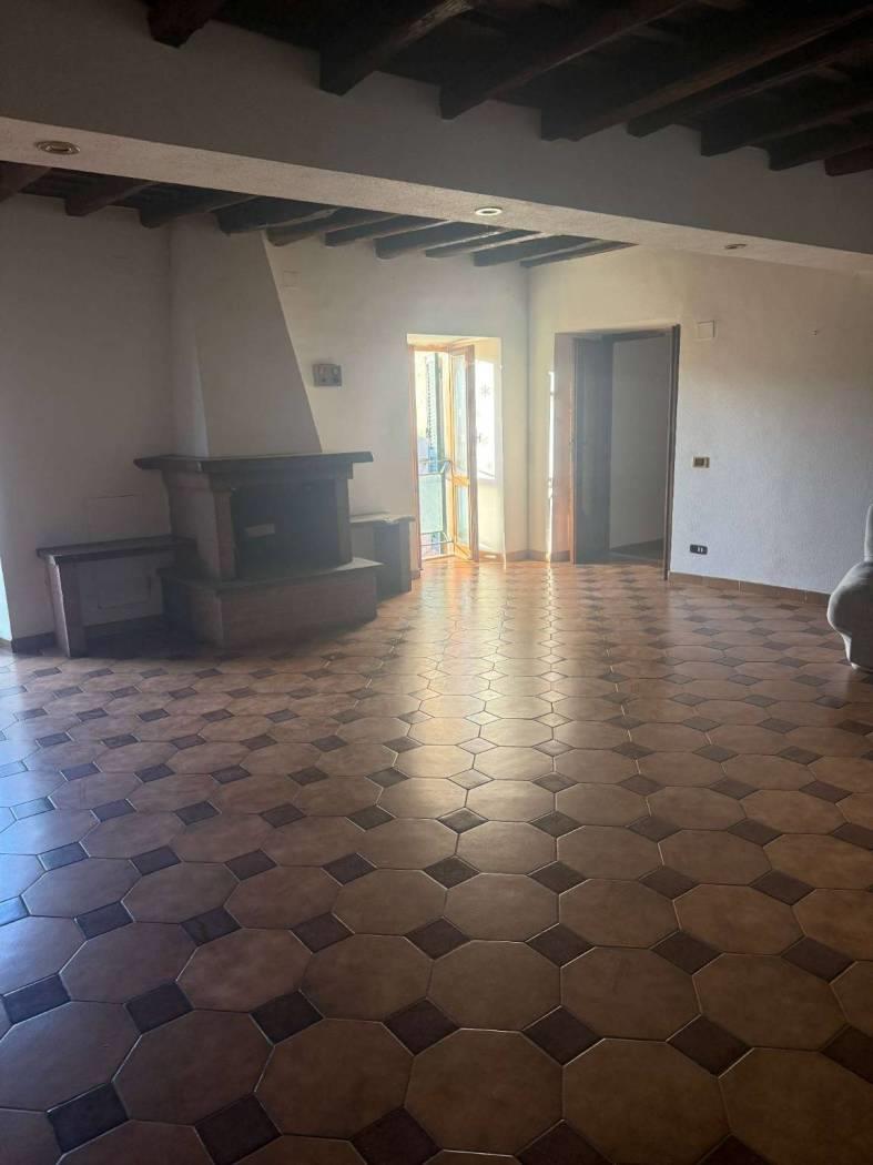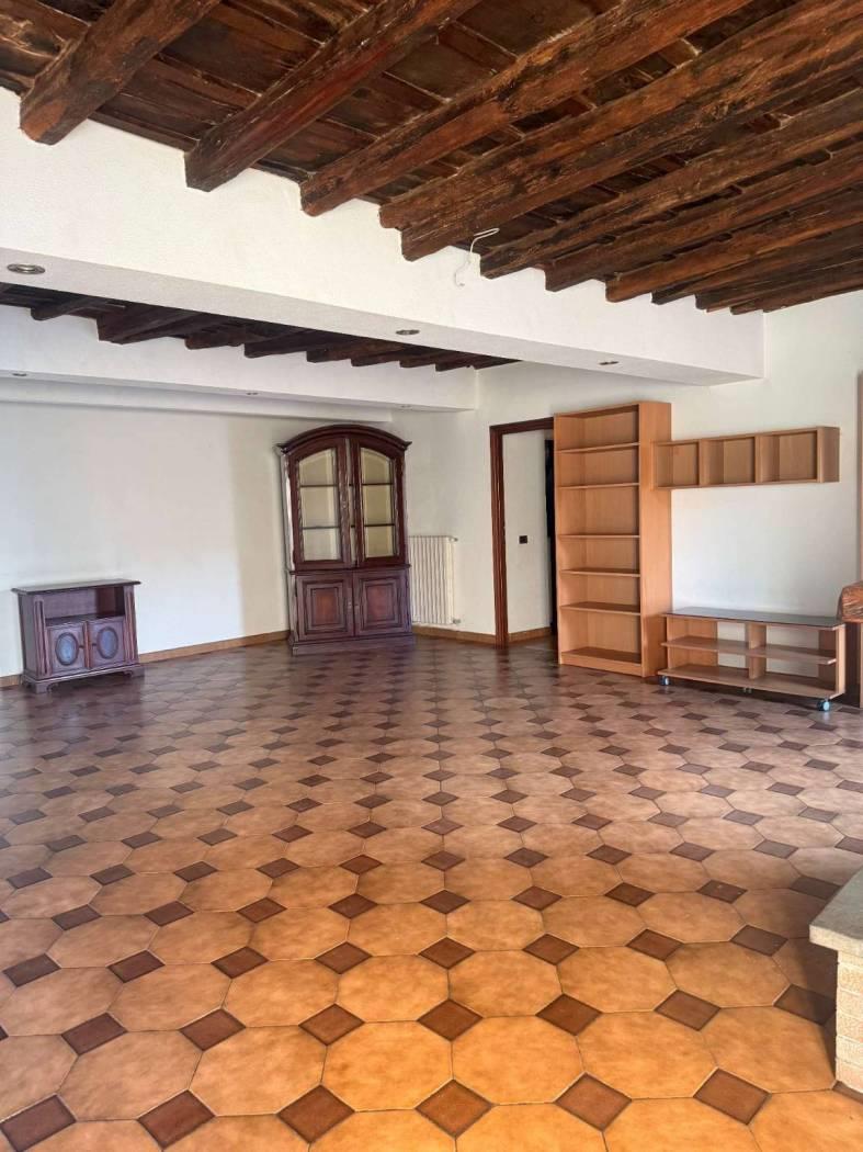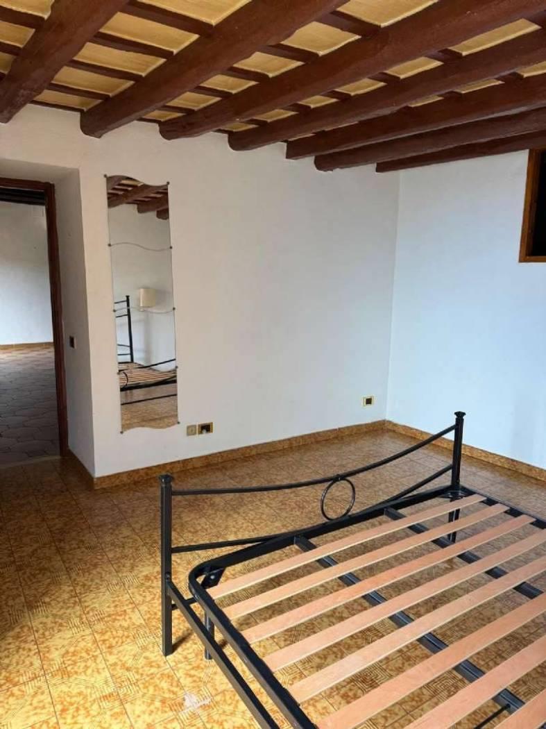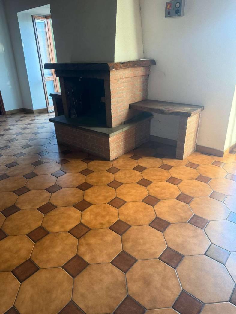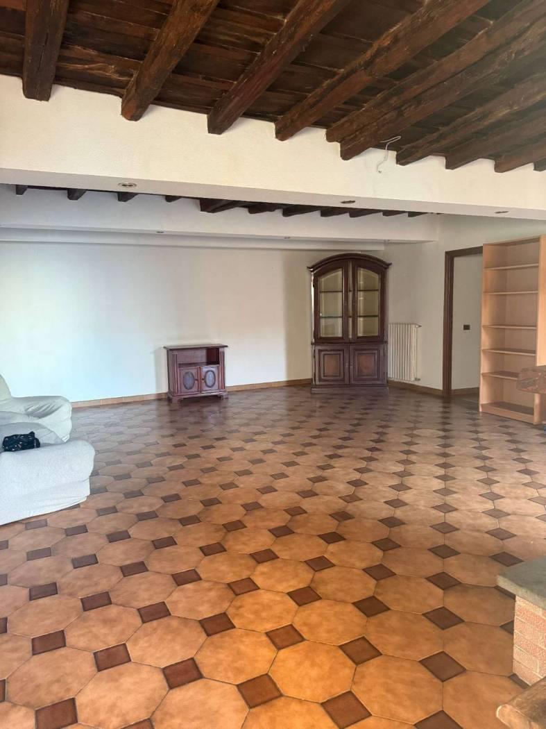 Possiede una metratura generosa ed e' composto da salone doppio con camino, tre camere ,cucina abitabile, bagno , i soffitti sono tutti con travi in legno a vista in ottime condizioni.