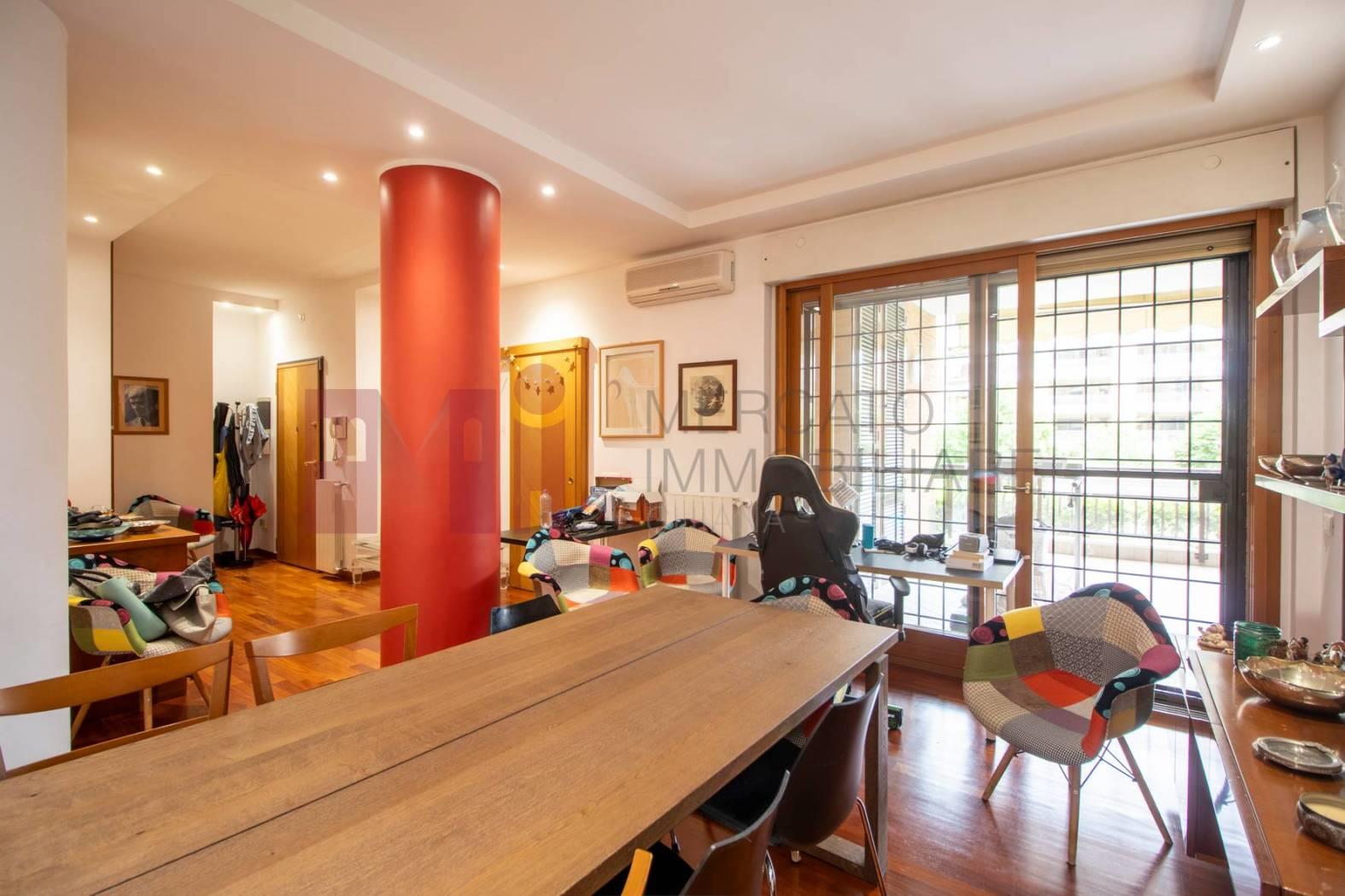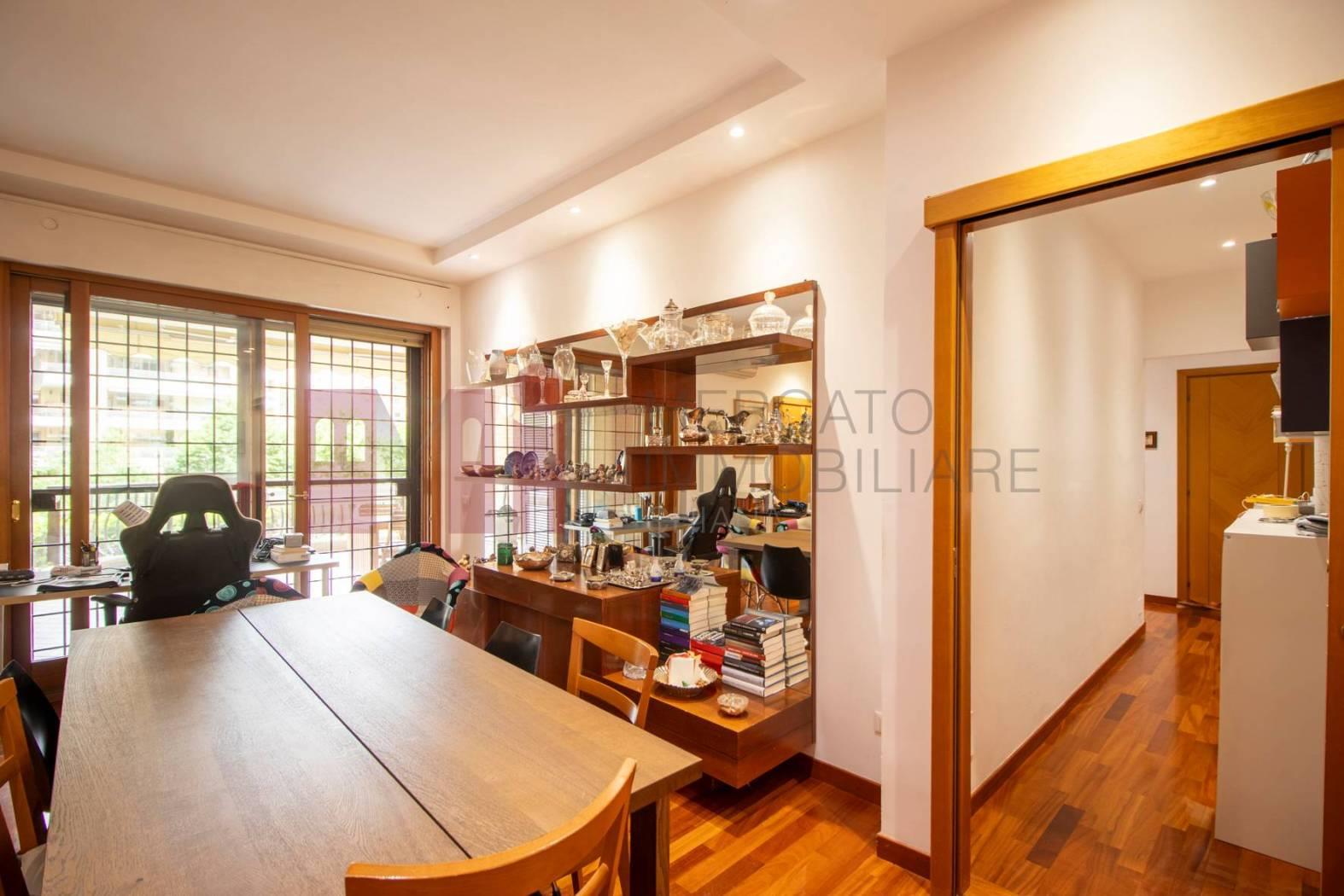 Nel quartiere Talenti, precisamente in Via Dario Niccodemi, all’interno di un complesso residenziale con ampi spazi verdi, proponiamo in vendita un quadrilocale situato al primo piano di una palazzina in cortina. Il condominio offre il servizio di portineria attivo tutto il giorno, una palestra attrezzata e una piscina. L’appartamento si presenta in ottime condizioni interne, si sviluppa su una superficie ampia, composto da ingresso, salone, una cucina abitabile, tre camere da letto, lavanderia/disimpegno, doppi servizi ed un terrazzo di 35 mq circa. L’immobile dispone di aria condizionata, infissi in allumino con doppi vetri, grate di sicurezza, serrande elettriche, zanzariere, video citofono e pavimenti in parquet e gres porcellanato. Completano la proprietà una comoda cantina e un box auto di 19 mq circa con la possibilità di aggiungere un ulteriore posto auto.