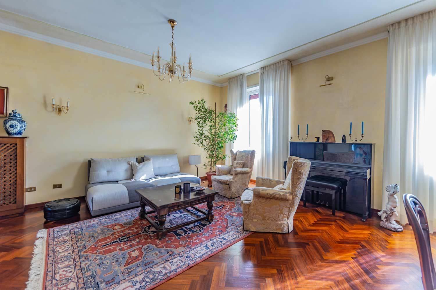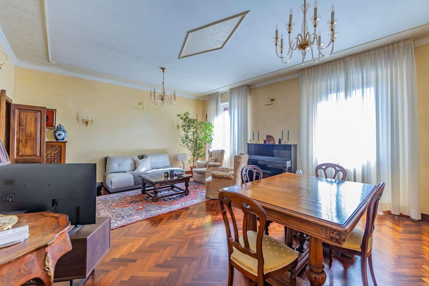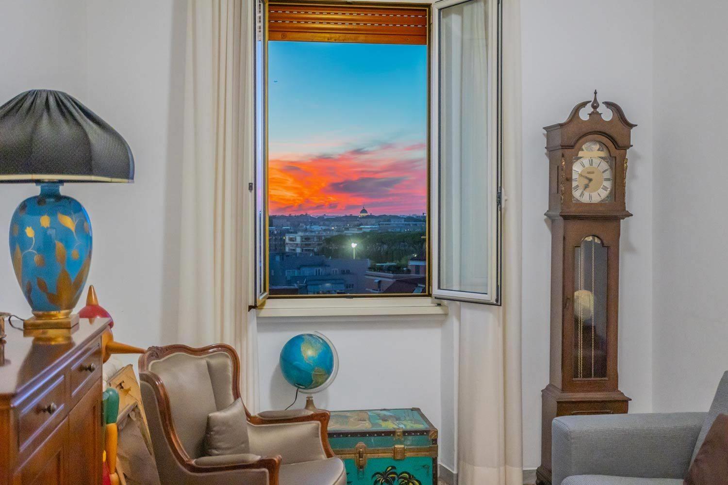 All’ottavo piano di un elegante stabile con ascensore, proponiamo un prestigioso appartamento che domina il quartiere, regalando una vista unica e spettacolare sulla Basilica di San Giovanni in Laterano.