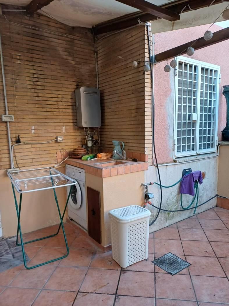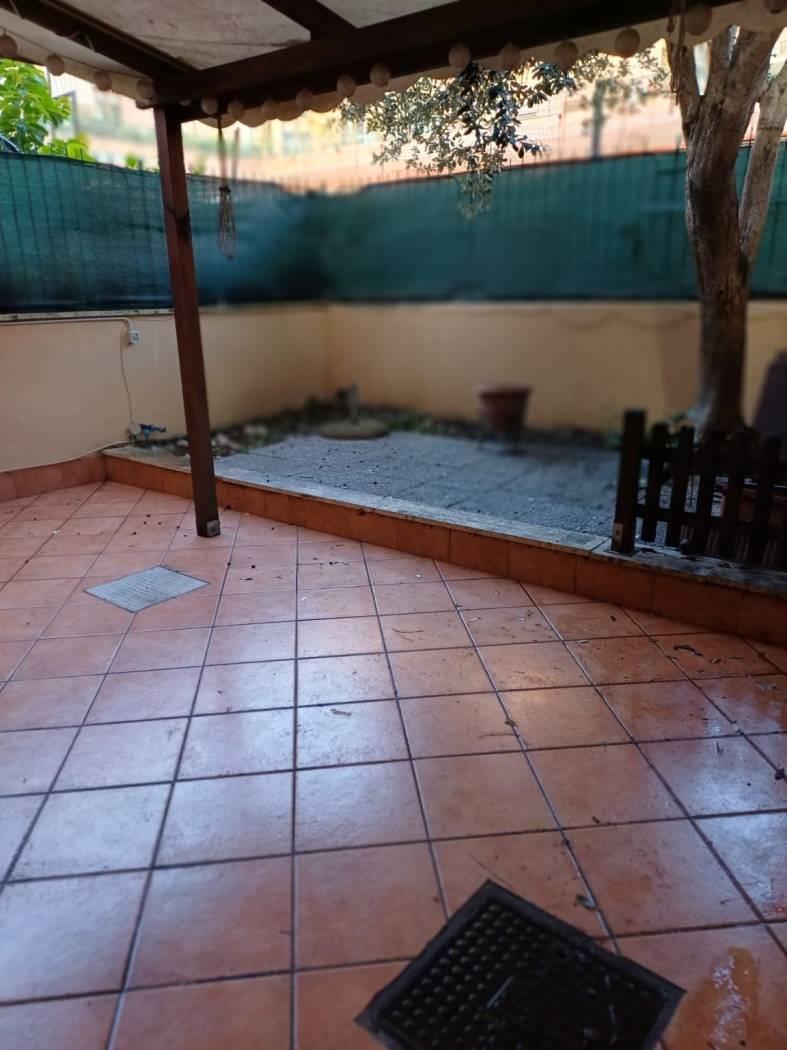 Presenza di grate su tutte le finestre, giardino parzialmente pavimentato anche con accesso verso l'esterno.