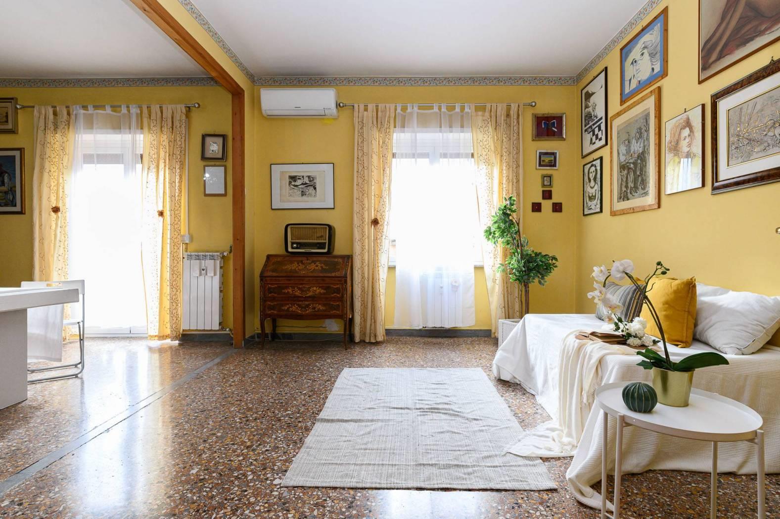 QUARTIERE TRIESE - VIA MIGIURTINIA - Adiacente Tomba di Callisto, la ROMANA Immobiliare propone in vendita un immobile di circa 110 mq, posto al 3° piano di una palazzina di 8 piani. L'appartamento è composto da: ingresso, salone doppio, cucina abitabile, due camere da letto, un bagno finestrato, possibilità di ricavare una terza camera, balcone. Completa la proprietà una comoda cantina. Infissi in PVC con vetrocamera.