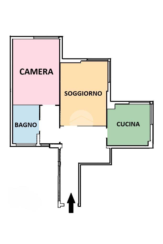 L’immobile è composto da: ingresso, ampio disimpegno, cucina abitabile, soggiorno, camera da letto e bagno.