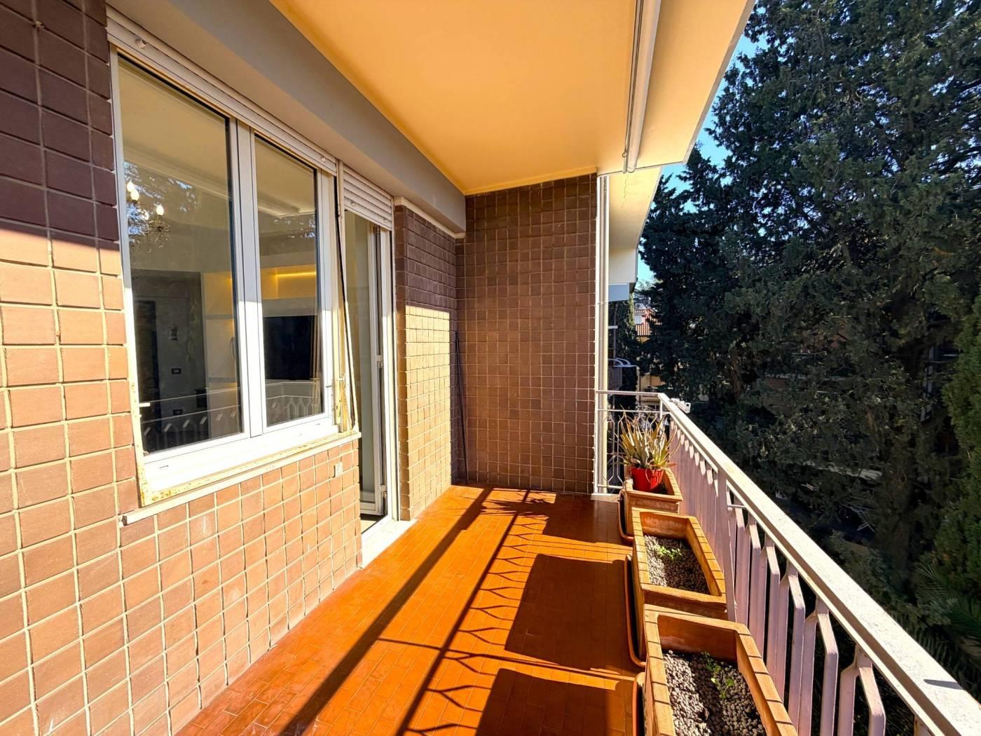 - la zona giorno ha uscita su un primo terrazzino quadrato con affaccio sul verde circostante, dove si può mettere un tavolino o un salottino da caffè;