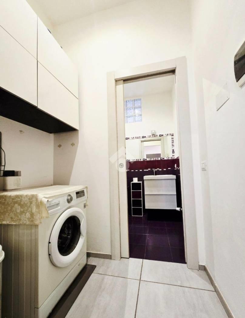 La casa si compone da un’ampia e luminosa zona living con balcone, cucinotto separato con cucina angolare, due camere da letto matrimoniali, un bagno padronale con doccia e finestra, antibagno adibito a lavanderia e un bagno di servizio.