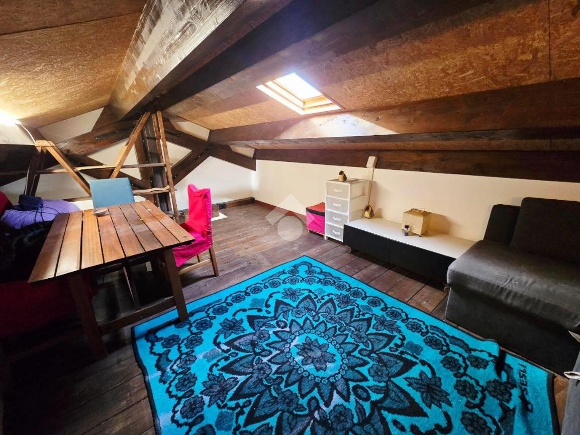 Una moderna scala in legno conduce al piano superiore dove è presente un locale soffitta dotato di lucernario, ideale anche come studio o camera per gli ospiti.