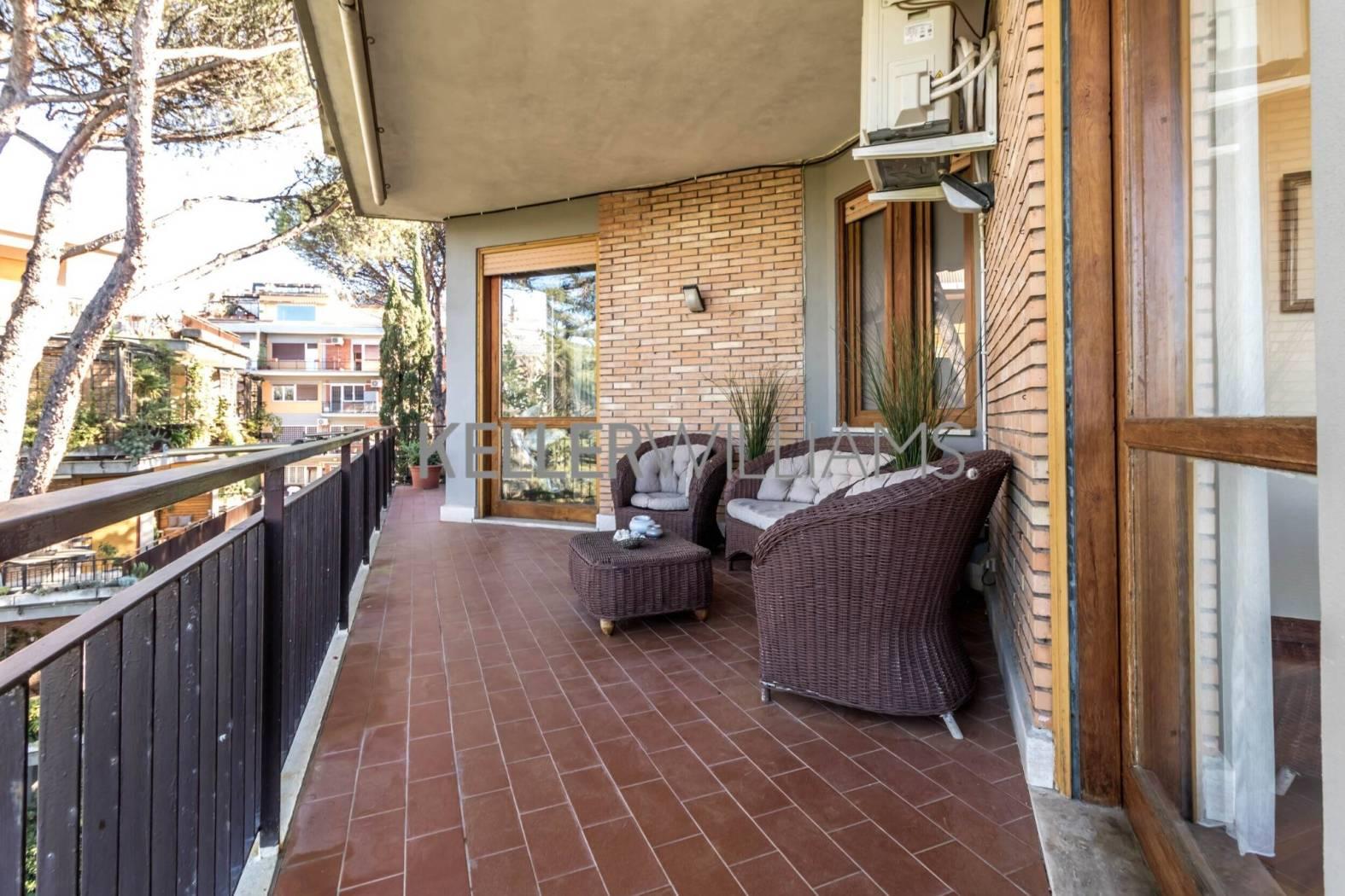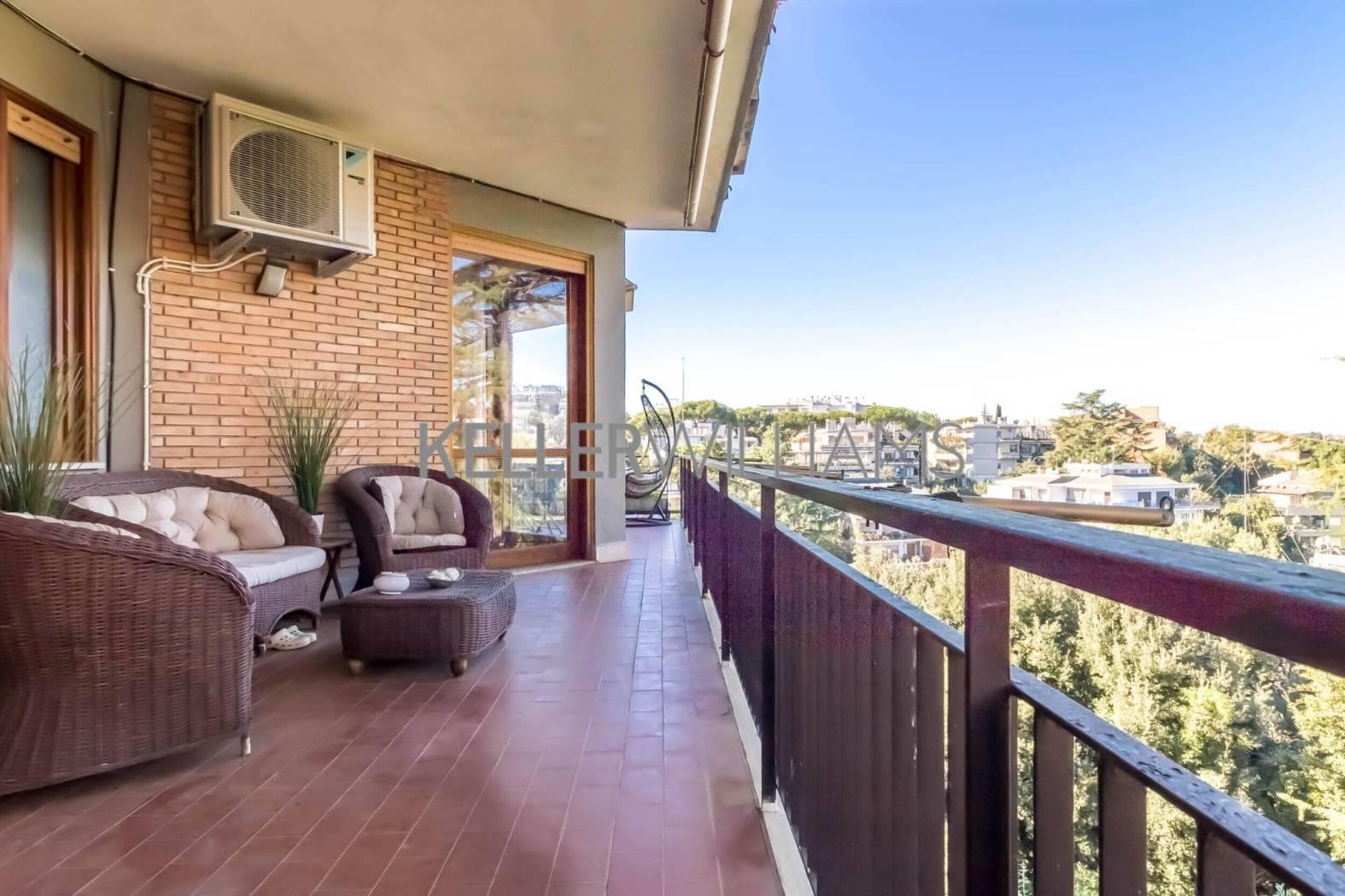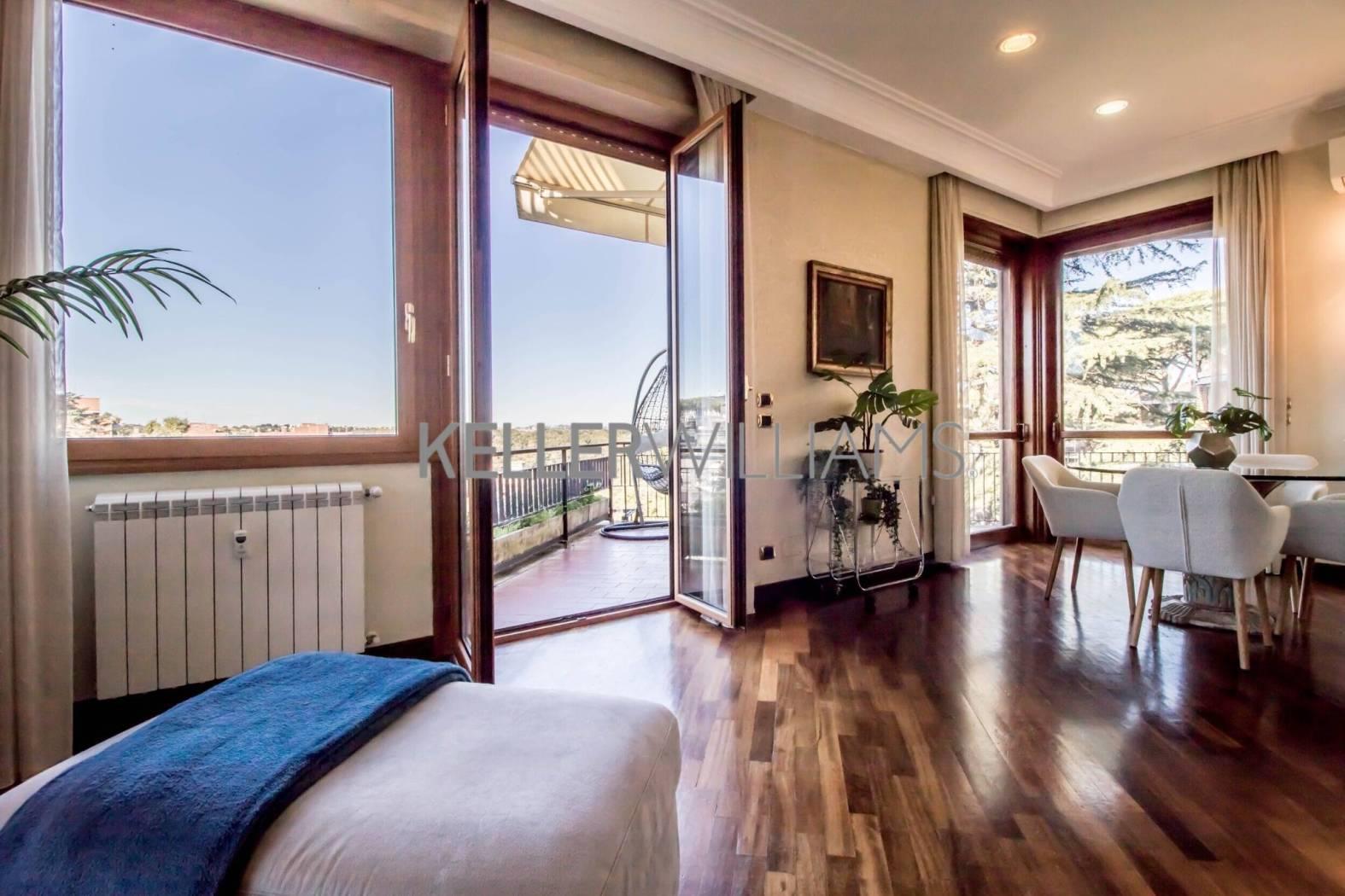 L'immobile si estende su circa 181 mq catastali e si distingue per le ampie vetrate che illuminano gli ambienti e per il terrazzo panoramico con suggestiva vista sul Parco dell'Insugherata.