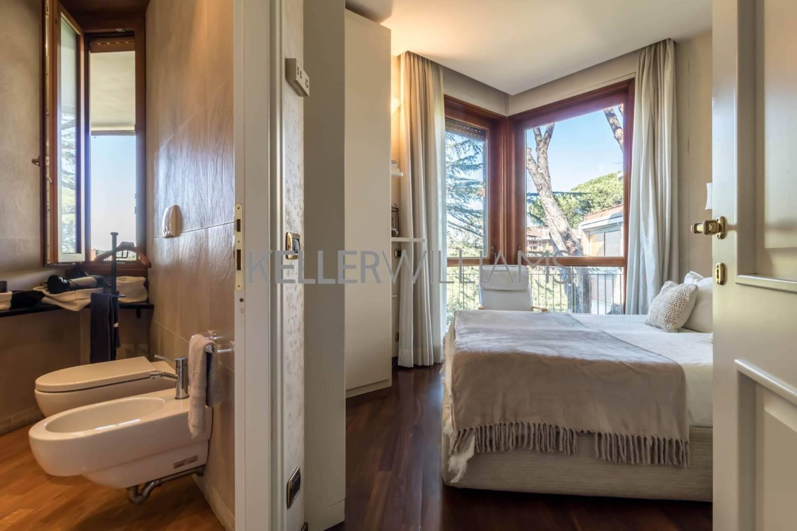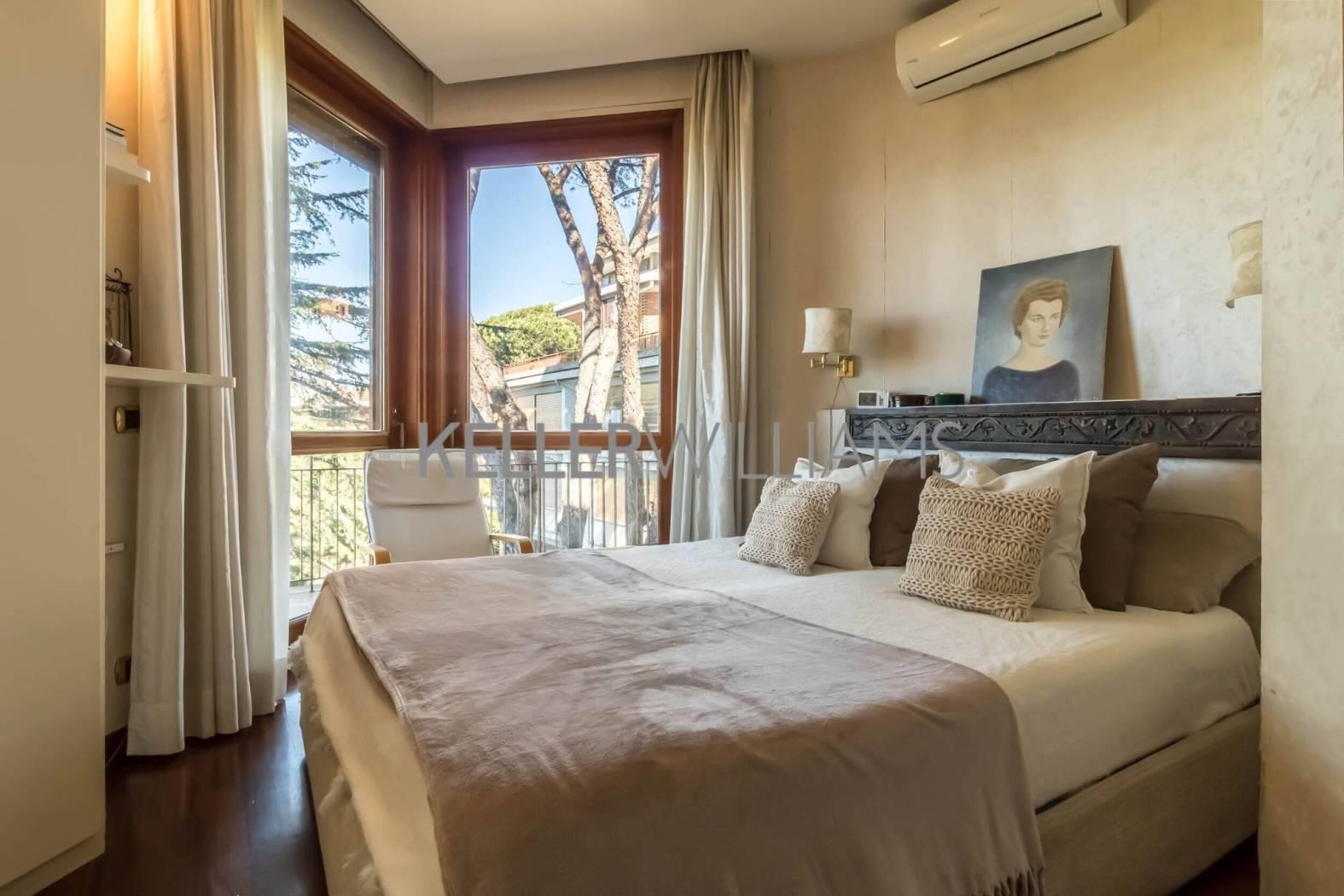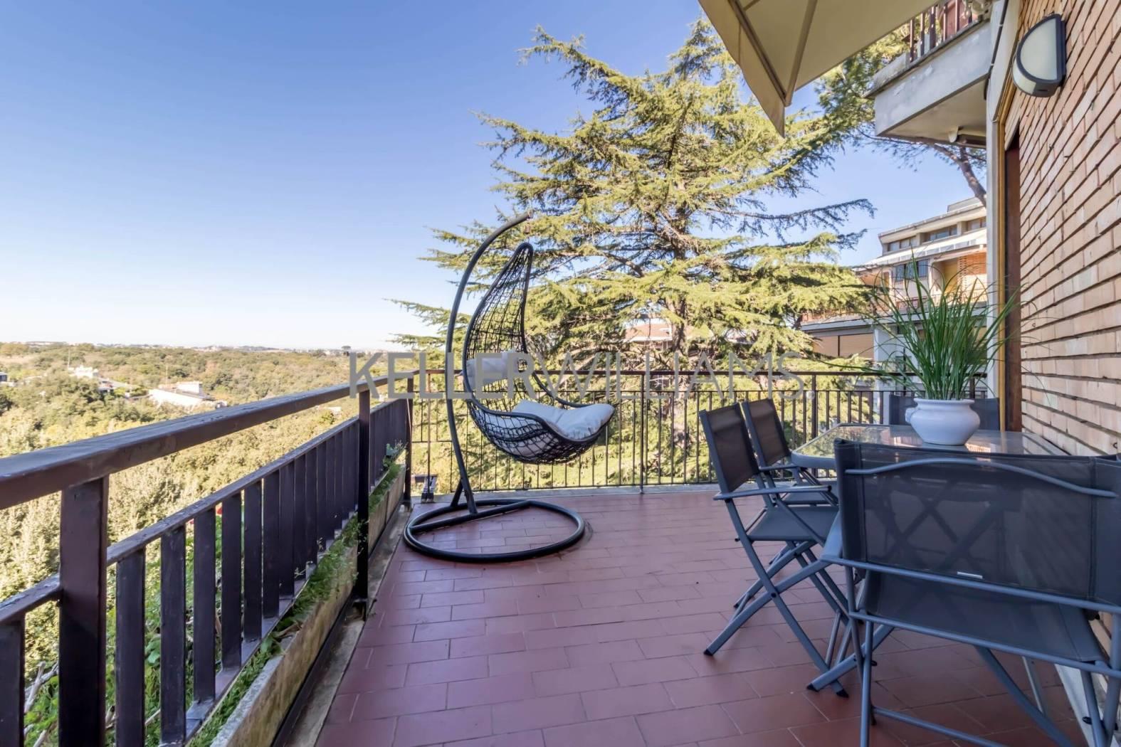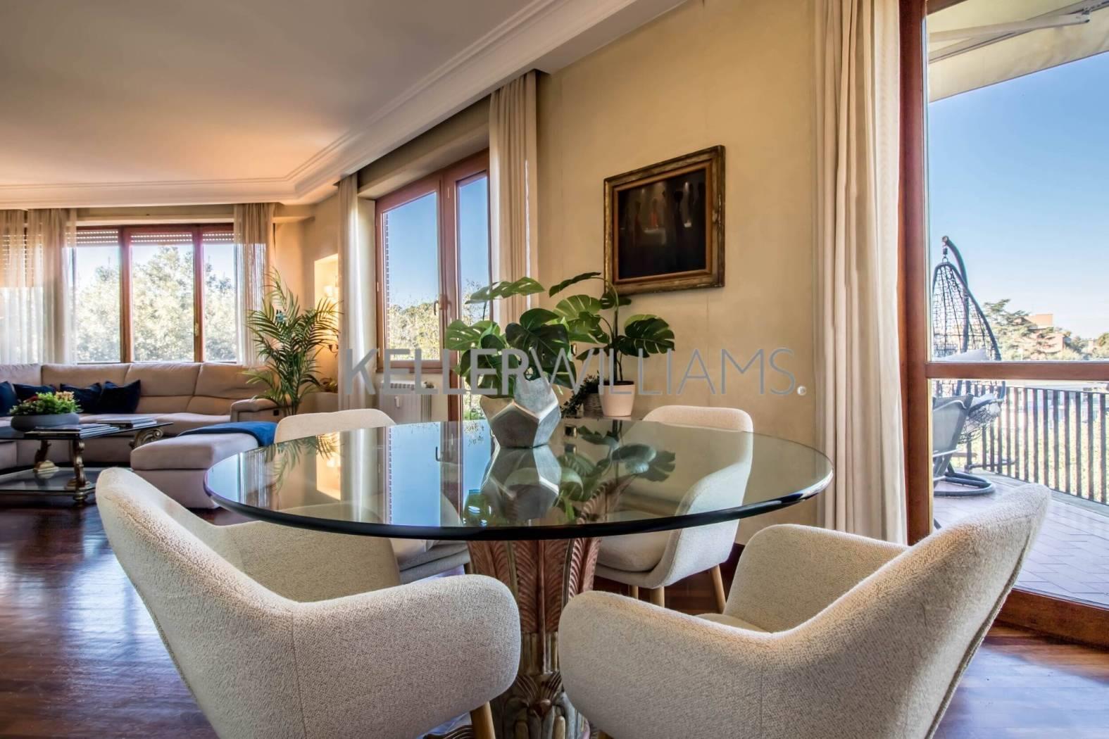 L'immobile si estende su circa 181 mq catastali e si distingue per le ampie vetrate che illuminano gli ambienti e per il terrazzo panoramico con suggestiva vista sul Parco dell'Insugherata.