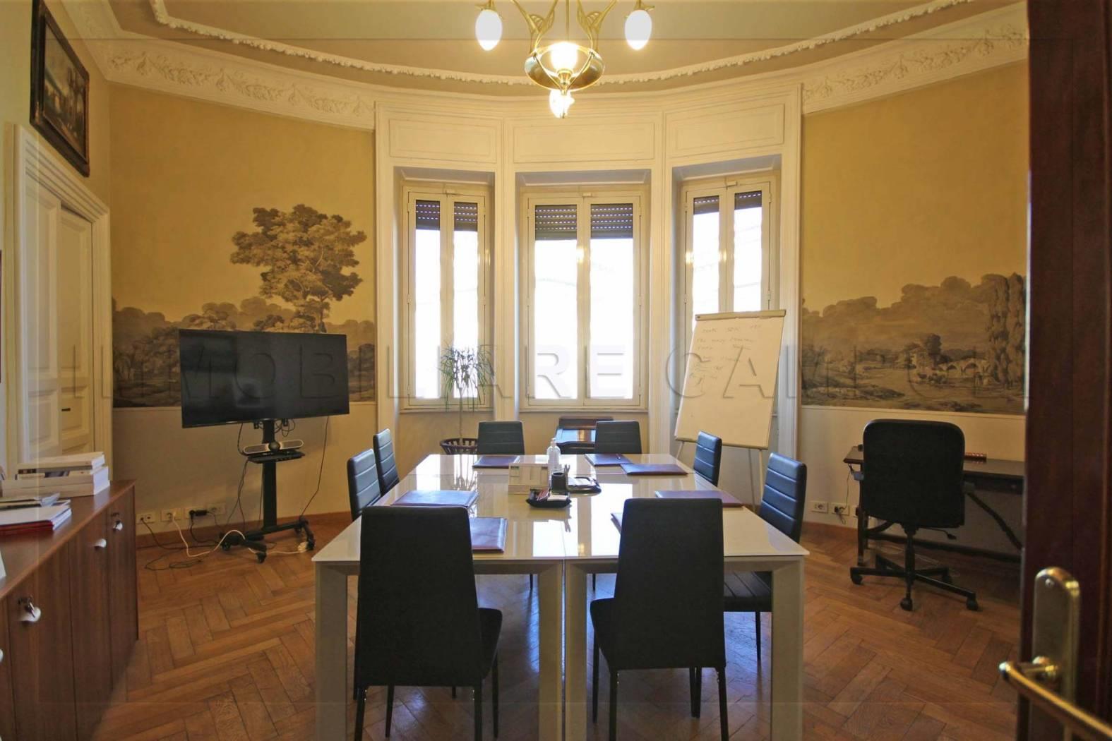 L'immobile, accatastato uso abitativo, in origine costituito da 2 unità immobiliari distinte e separate e successivamente unite, è attualmente configurato ed utilizzato come unico grande studio professionale. Lo stesso vanta una distribuzione degli spazi estremamente flessibile e grazie alla presenza dei due ingressi indipendenti (uno per ogni scala dell’edificio) permette di personalizzare la suddivisione interna secondo diverse necessità: da un unico grande ufficio di rappresentanza, ad un unica abitazione (o abitazioni) o abitazione e studio.