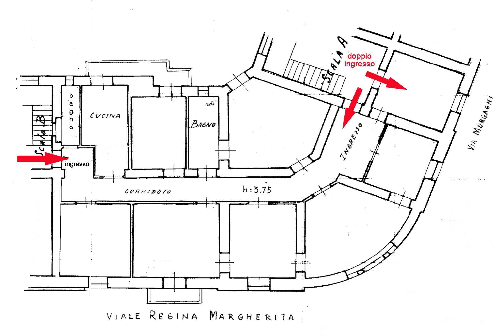 Nella centralissima e servitissima Viale Regina Margherita - angolo Morgagni, in posizione strategica e a soli due passi dai principali servizi e collegamenti della capitale, prospiciente la fermata della metropolitana “A” Policlinico, in signorile edificio d'epoca con servizio di portineria intera giornata, si propone la vendita di un elegante immobile posto al primo piano alto sul rialzato (secondo catastale) di 251 mq comm.li, particolarmente adatto ad un utilizzo di tipo professionale e/o come abitazione-studio.