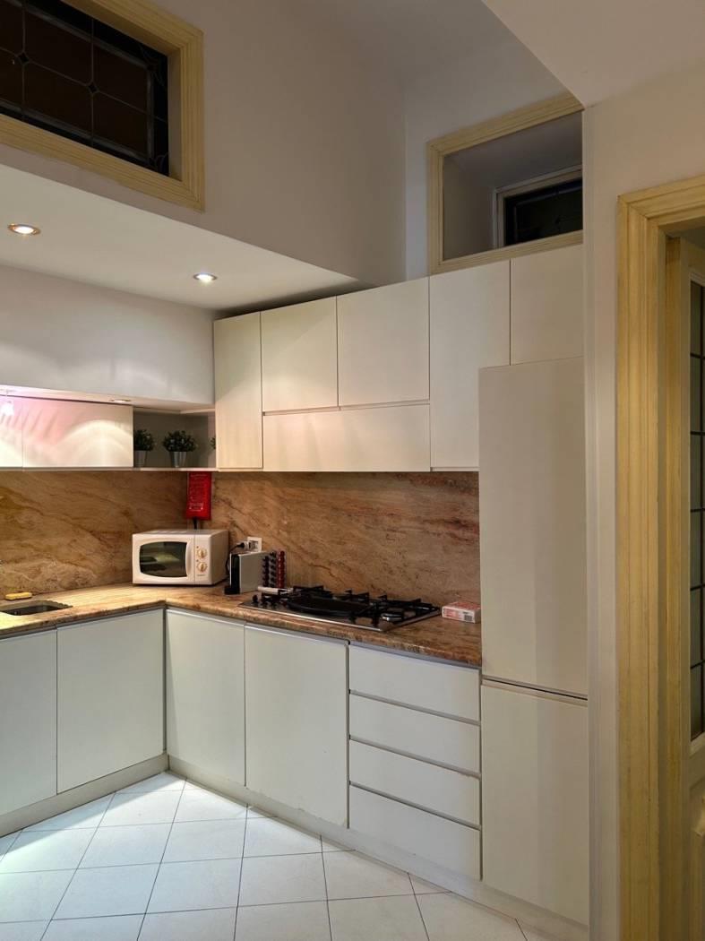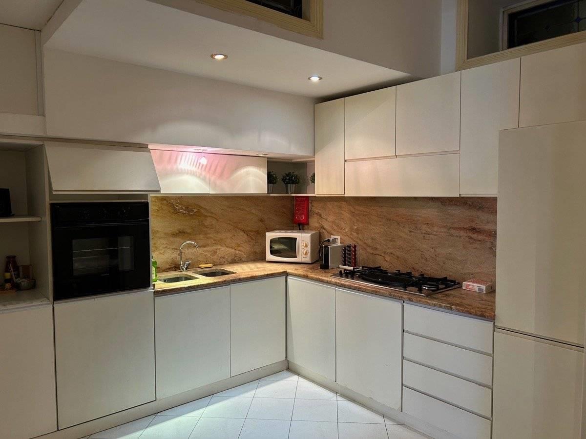 A servizio della zona giorno, la cucina abitabile, in posizione contigua all’area living, offre praticità e continuità funzionale, mantenendo la vocazione conviviale dell’appartamento.