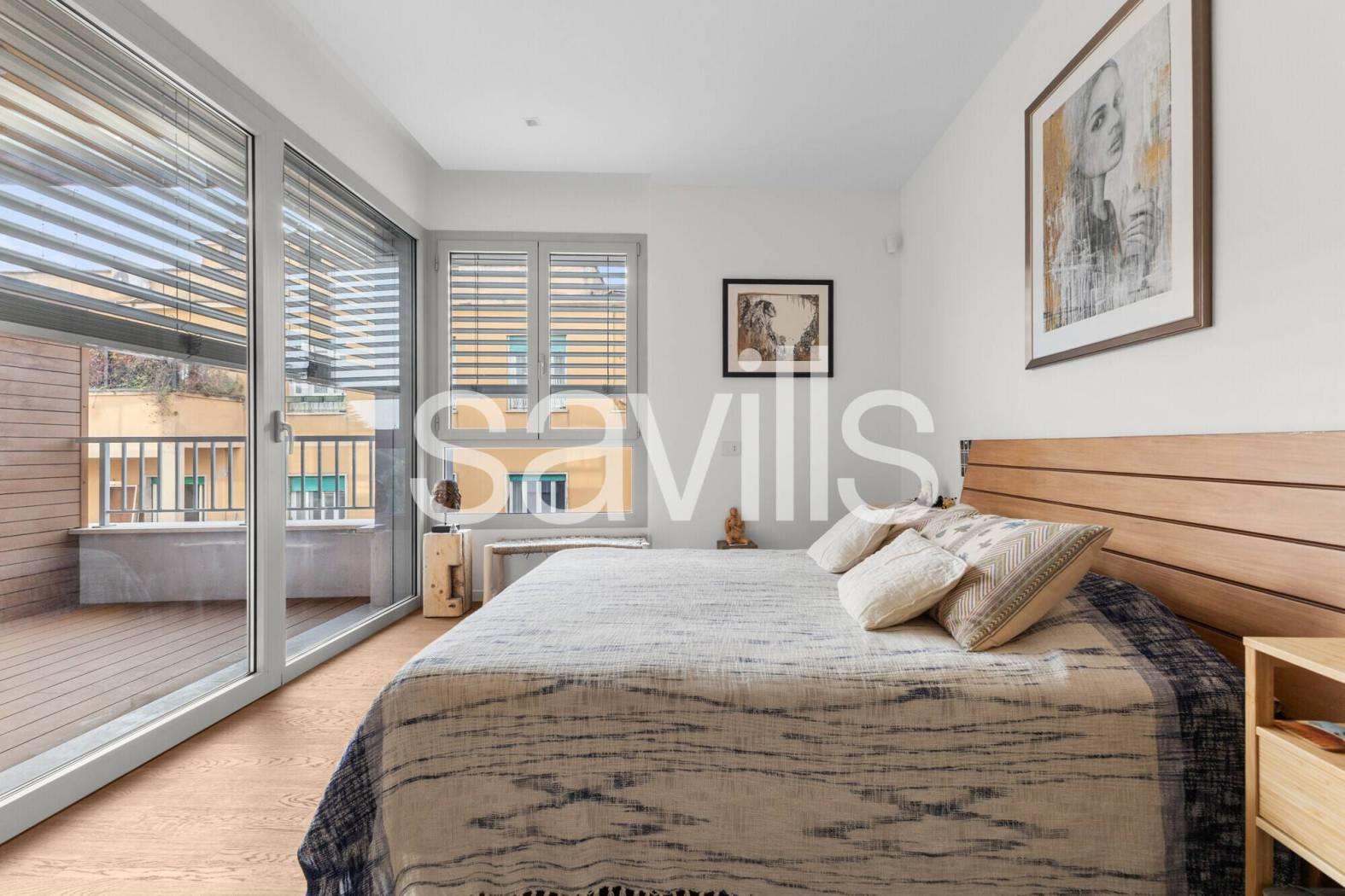 Questa raffinata residenza situata in una palazzina di recente costruzione, progettata secondo i più elevati standard contemporanei di comfort, design ed efficienza, si trova in una delle zone più eleganti e riservate della città, a pochi passi dal parco di Villa Massimo.