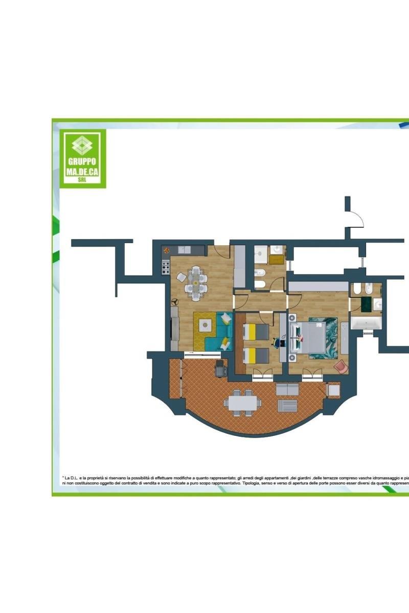 RESIDENZE MONTE DEL MARMO, nuovo complesso residenziale, CONSEGNA PREVISTA MARZO 2027, proponiamo in vendita appartamento di mq. commerciali 80 circa, trilocale, piano primo, esposizione E, composto da, salone con angolo cottura, camera matrimoniale con servizio padronale, camera singola, disimpegno, secondo servizio, terrazzo 30 mq circa. Completa la proprietà una cantina. € 370.000 - Possibilità di acquisto del posto auto e/o box. Classe energetica A4 - - R6 - INTERNO 8. Il riscaldamento degli ambienti e la produzione di acqua calda sanitaria sono affidati alla centrale di teleriscaldamento con regolazione della temperatura indipendente. Il confort estivo è garantito dagli impianti di condizionamento e di ricambio dell’aria che creano una temperatura piacevolmente fresca nei mesi caldi. Molteplici sono gli accorgimenti che garantiranno il massimo della sicurezza e del comfort in materia di risparmio energetico, bioedilizia ed isolamento termico ed acustico: struttura antisismica, impianto centralizzato, pannelli fotovoltaici, sistema domotico, sistema radiante a pavimento, recupero delle acque piovane, assorbimento termico. Il comprensorio sarà dotato di piscina, campi da paddle, zona fitness, parco giochi, area cani.