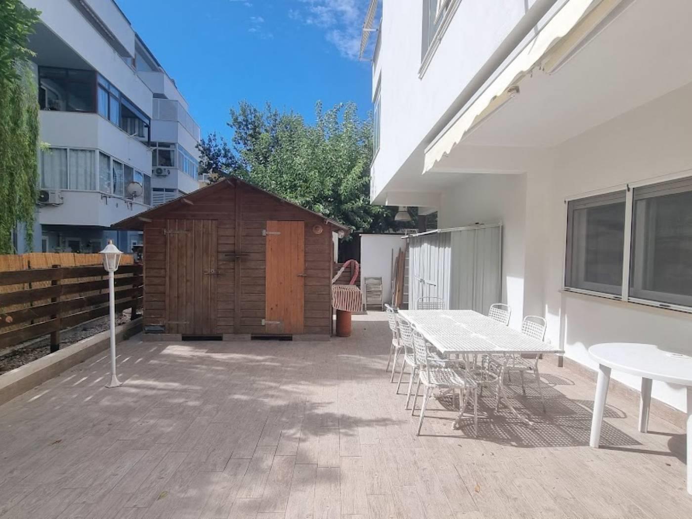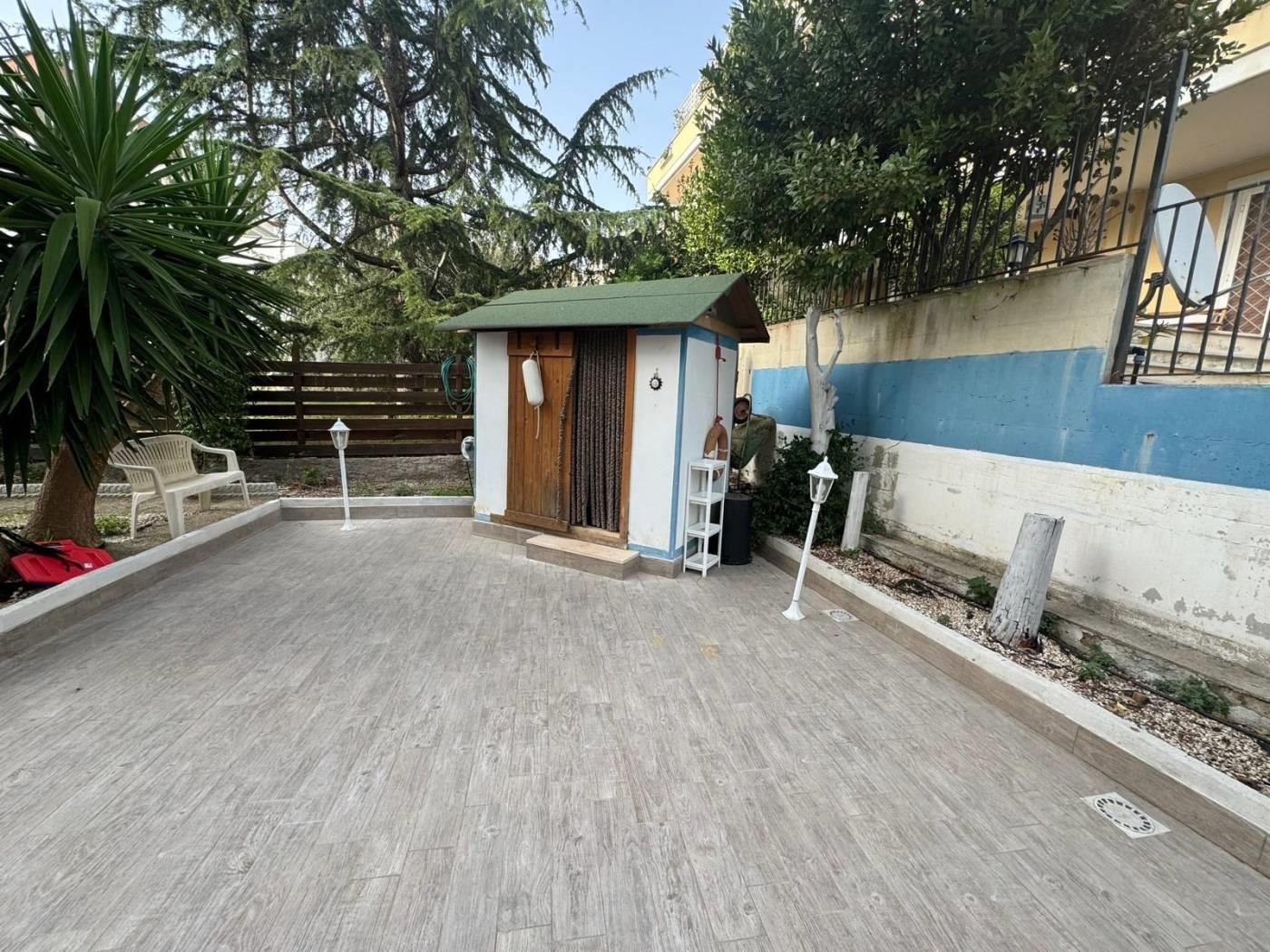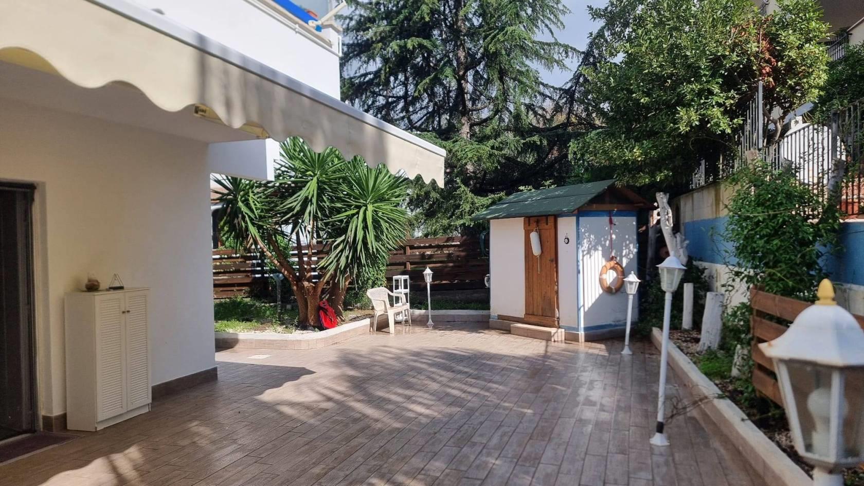 L'immobile dispone di un giardino mattonato di circa 200mq con casetta in legno per ricovero attrezzi ed una simpatica " cabina " stile balneare con servizio e doccetta.