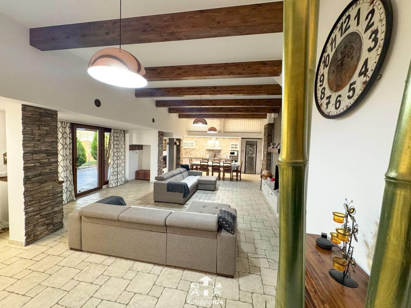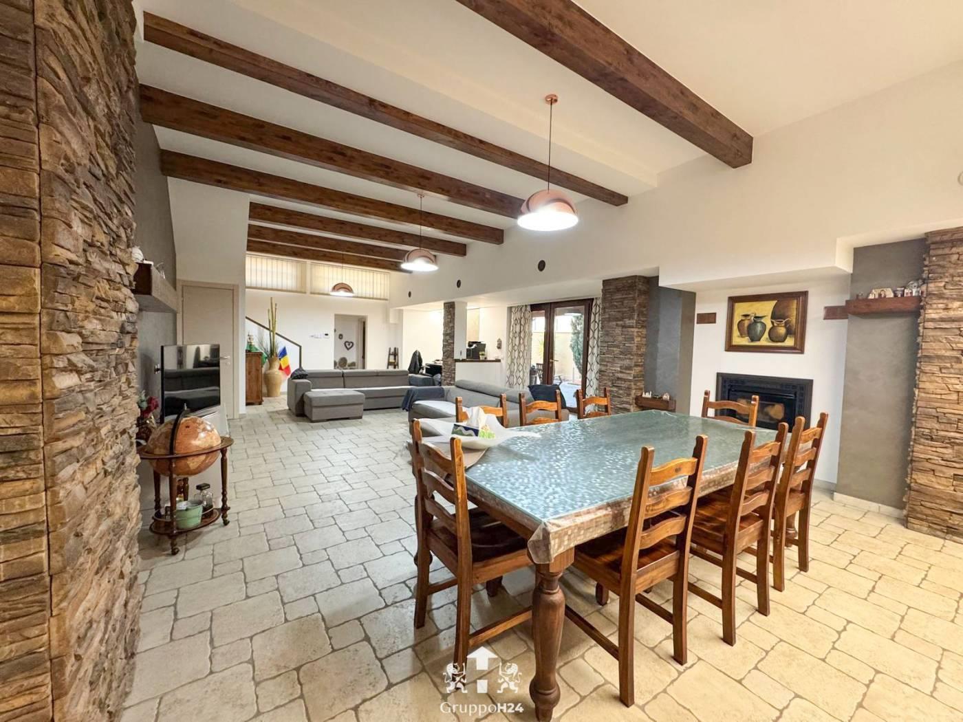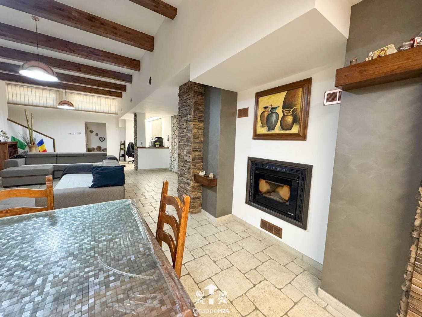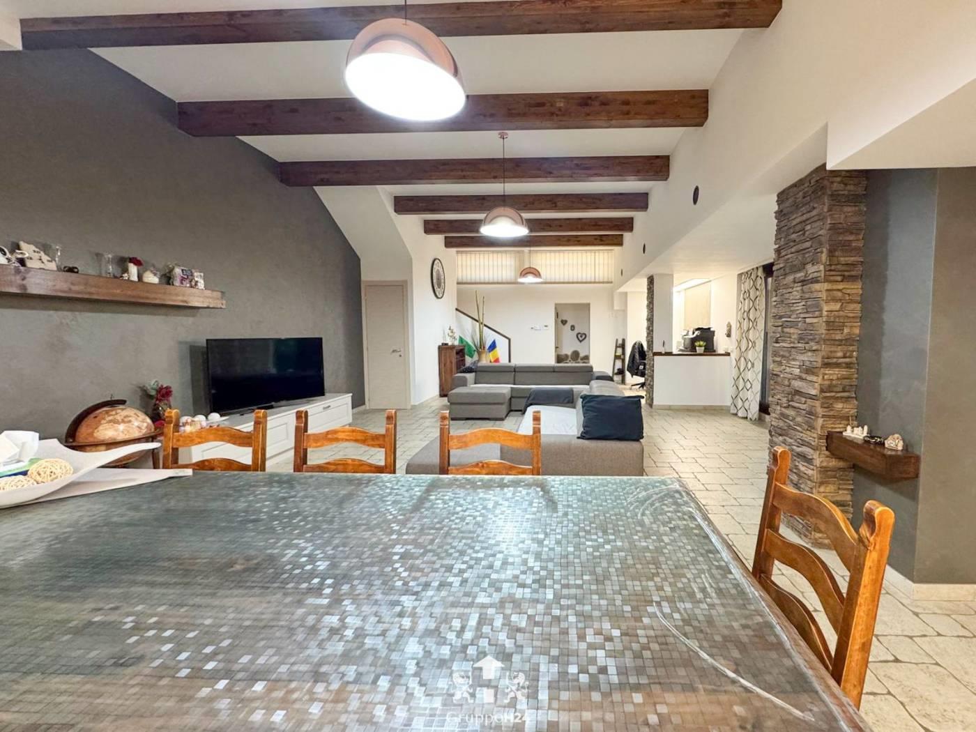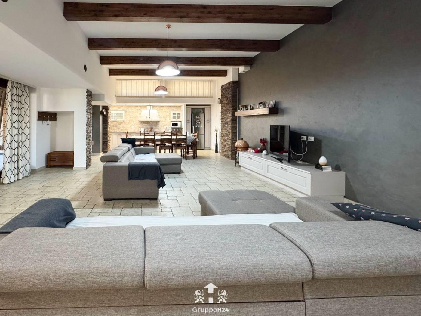Al piano terra (seminterrato ma completamente sbancato) troviamo un ampio e curato salone openspace, ambiente caldo e accogliente impreziosito da una stufa a pellet con canna fumaria collegata al tetto, travi in legno a vista, pavimentazione in cotto e rivestimenti in pietra su alcune pareti che donano carattere e personalità agli spazi. La cucina è ampia e ben integrata nella zona giorno. Completa il livello un elegante bagno con doccia in marmo. Dalla zona living si accede direttamente al giardino privato di circa 100 mq, uno spazio esterno vivibile e ben organizzato, dotato di patio in legno e barbecue in muratura, anche quest'ultimo con canna fumaria collegata al tetto. Dal giardino si accede inoltre alla lavanderia con bagno. Il piano è arricchito anche da un comodo sottoscala adibito a ripostiglio.