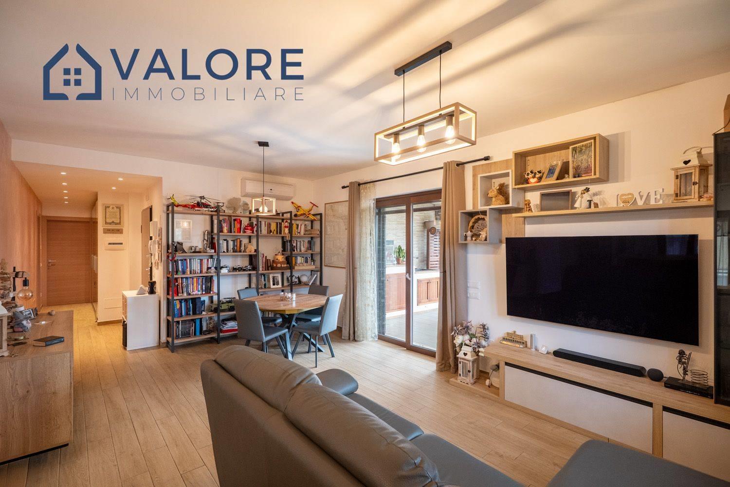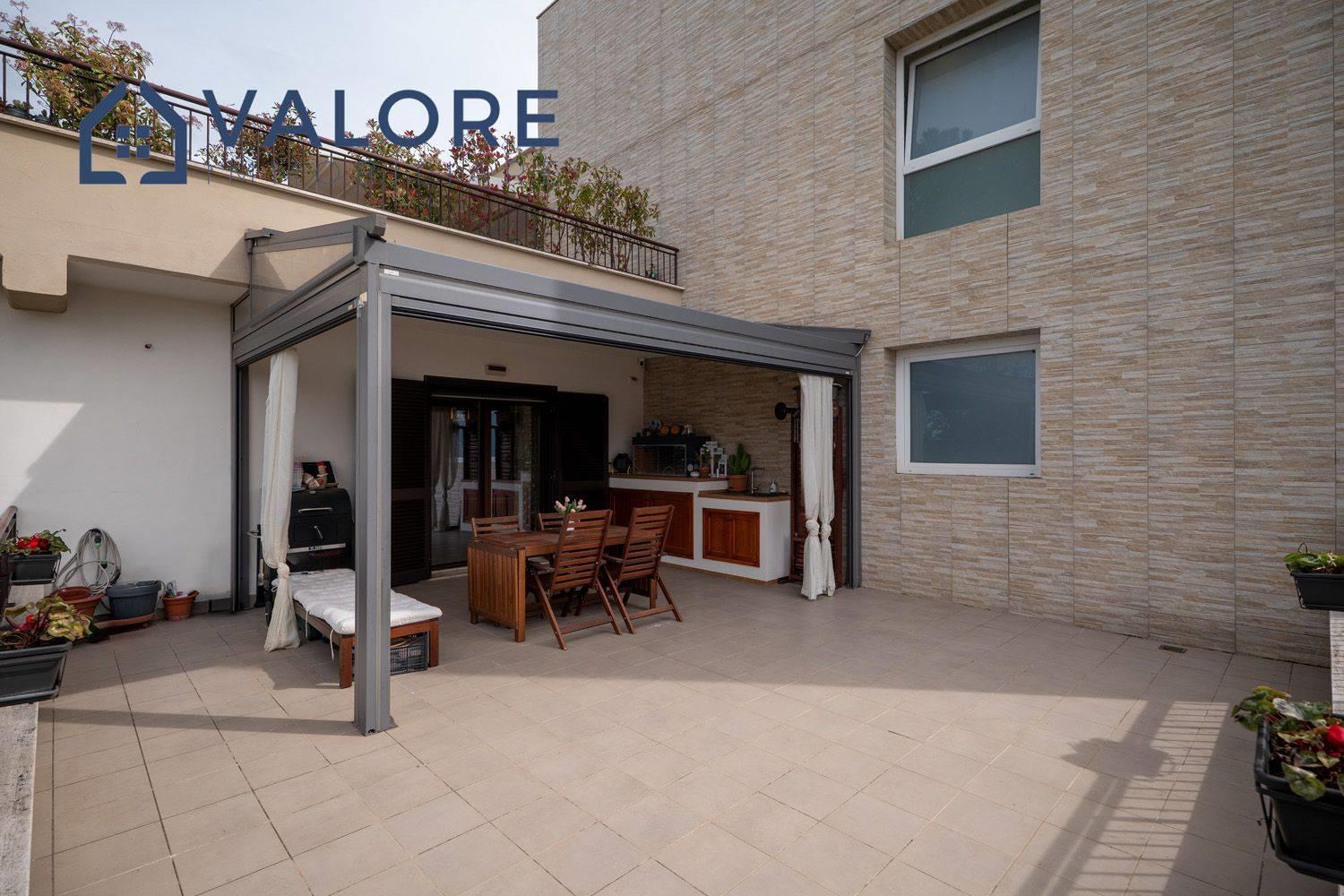 L’immobile si distingue per comfort e raffinatezza degli ambienti ed è così composto: ingresso, ampio salone, cucina a vista, due camere matrimoniali, due bagni entrambi finestrati, due balconi e uno splendido terrazzo di circa 50 mq attrezzato con pergotenda elettrica e zona servizi, ideale per condividere piacevoli momenti all’aperto da trascorrere in tutte le stagioni.