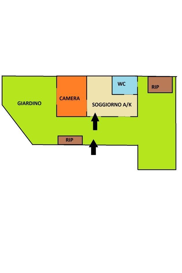 E’ composto da: ingresso, soggiorno a/k, camera da letto, servizio finestrato con doccia e giardino perimetrale. Gli ambienti della casa sono ben distribuiti.
