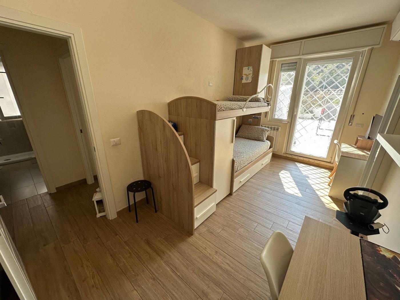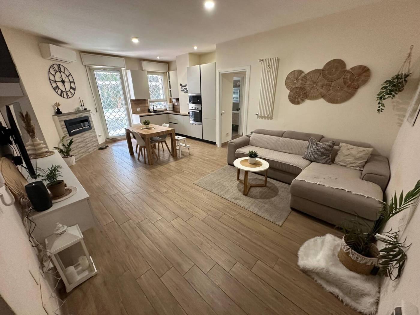 L'immobile è composto da: luminoso soggiorno con angolo cottura, bagno finestrato con doccia, cameretta, camera matrimoniale con bagno privato e completa la proprietà un ampio giardino pavimentato privato perfetto per cene e pranzi all'aperto e momenti di relax. L'immobile si presenta in ottime condizioni sia interne che esterne ed è pronto per essere abitato.