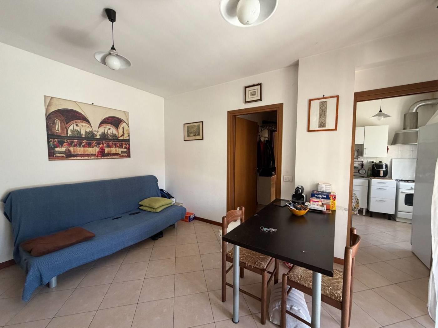 L'ingresso ci accoglie in un soggiorno spazioso e accogliente, cuore pulsante della casa, con accesso diretto a un splendido terrazzo abitabile, ideale per momenti di relax all'aperto o cene conviviali. La zona giorno è completata da un cucinotto separato, una soluzione funzionale che permette di gestire al meglio gli spazi domestici.