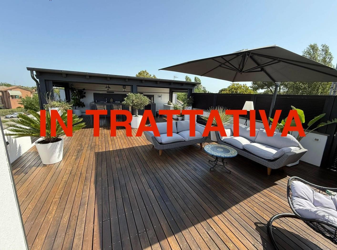 La Valva Realty Italia propone in vendita uno splendido appartamento recentemente e finemente ristrutturato con materiali di pregio, all'interno del complesso denominato "Rondò", zona Casal Palocco. L'immobile, di circa 105 mq su un unico livello ed al primo piano, con parcheggio esclusivo all'interno del parco, è composto da: ingresso con armadio a muro a specchio, ampio salone con camino a bioetanolo, cucina Stosa ad angolo cottura con penisola, corridoio con ripostiglio adibito a lavanderia che conduce alla zona notte dove si trovano tre camere da letto e due bagni, uno dei quali situato all'interno della camera padronale. Al secondo piano troviamo una grande terrazza di proprietà, dell'estensione dell'appartamento sottostante, con vista sul verde di Casal Palocco, anch'essa finemente ristrutturata con pavimentazione in legno Iroko, cucina Planet in acciaio Inox, struttura con pergole apribili sia frontali che laterali, sottotetti con aperture adibite a ripostiglio e luci notturne perimetrali.