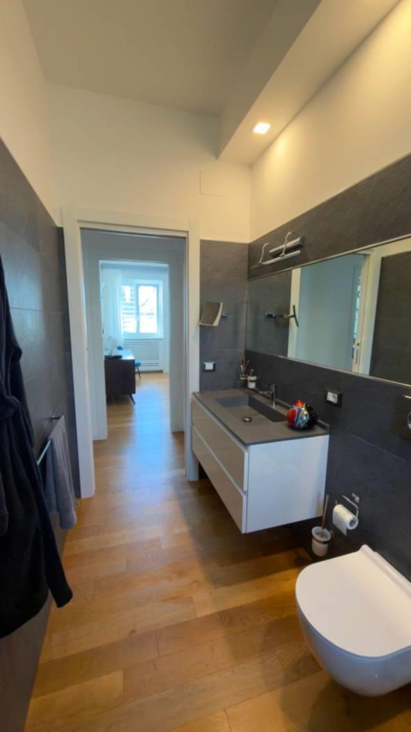 La recente ristrutturazione comprende il parquet in tutte le stanze, impianto di riscaldamento a pompa di calore caldo/freddo Daikin oltre al riscaldamento centralizzato, inferriate, porte scorrevoli in tutte le stanze, controsoffitto con faretti, serrande elettriche, infissi Oknoplast, plafoniere a gesso, e tende su misura.