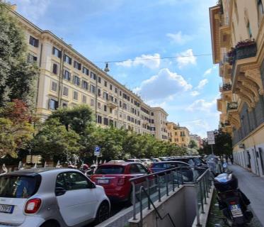 Salario Pinciano,vicinity Villa Borghese, in splendid period building, apartment on the third floor consisting of entrance hall, living room with bright views over open spaces, live-in kitchen, 2 bedrooms, 2 bathrooms. The property is in excellent condition and is equipped with air conditioning, double paned windows, olive parquet flooring, security door and sound diffusion system. The apartment will be rented out unfurnished with equipped kitchen and bookcase in the living room. It is possible to rent a parking space with shed with a supplement of 300,00 euros per month. The apartment will be available in July 2025.