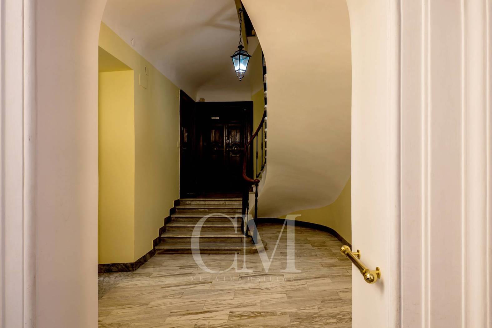 L'appartamento è posto al primo piano di una palazzina d'epoca di 5 piani con ascensore e servizio di portineria.