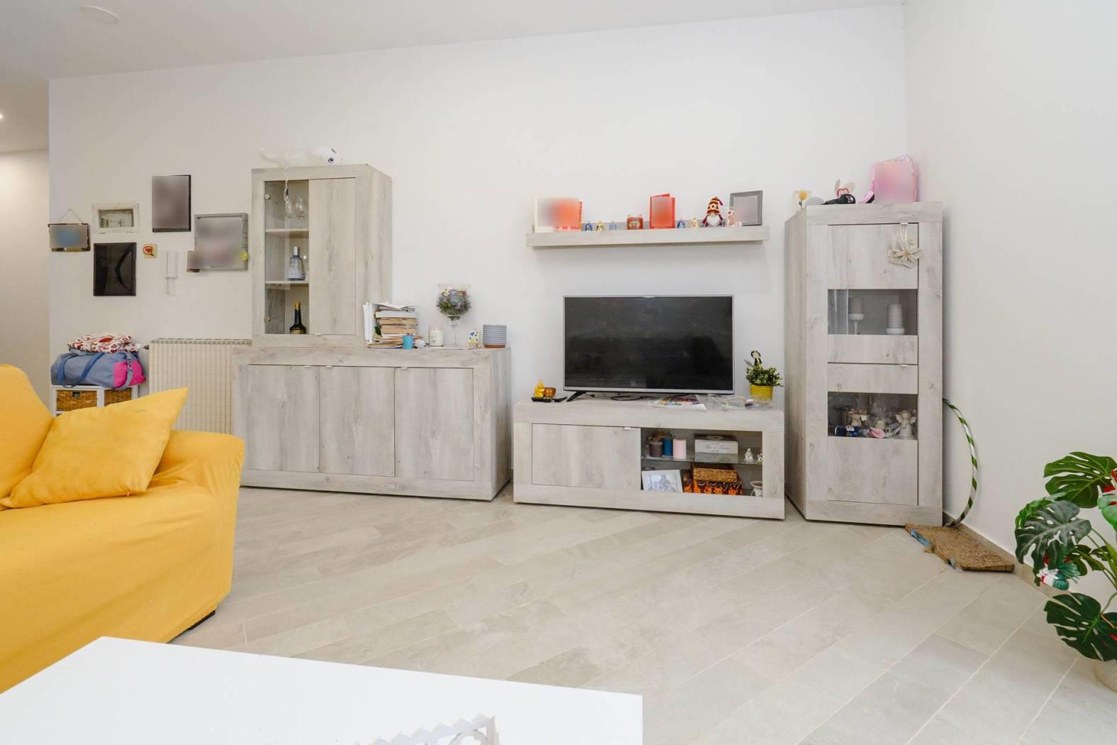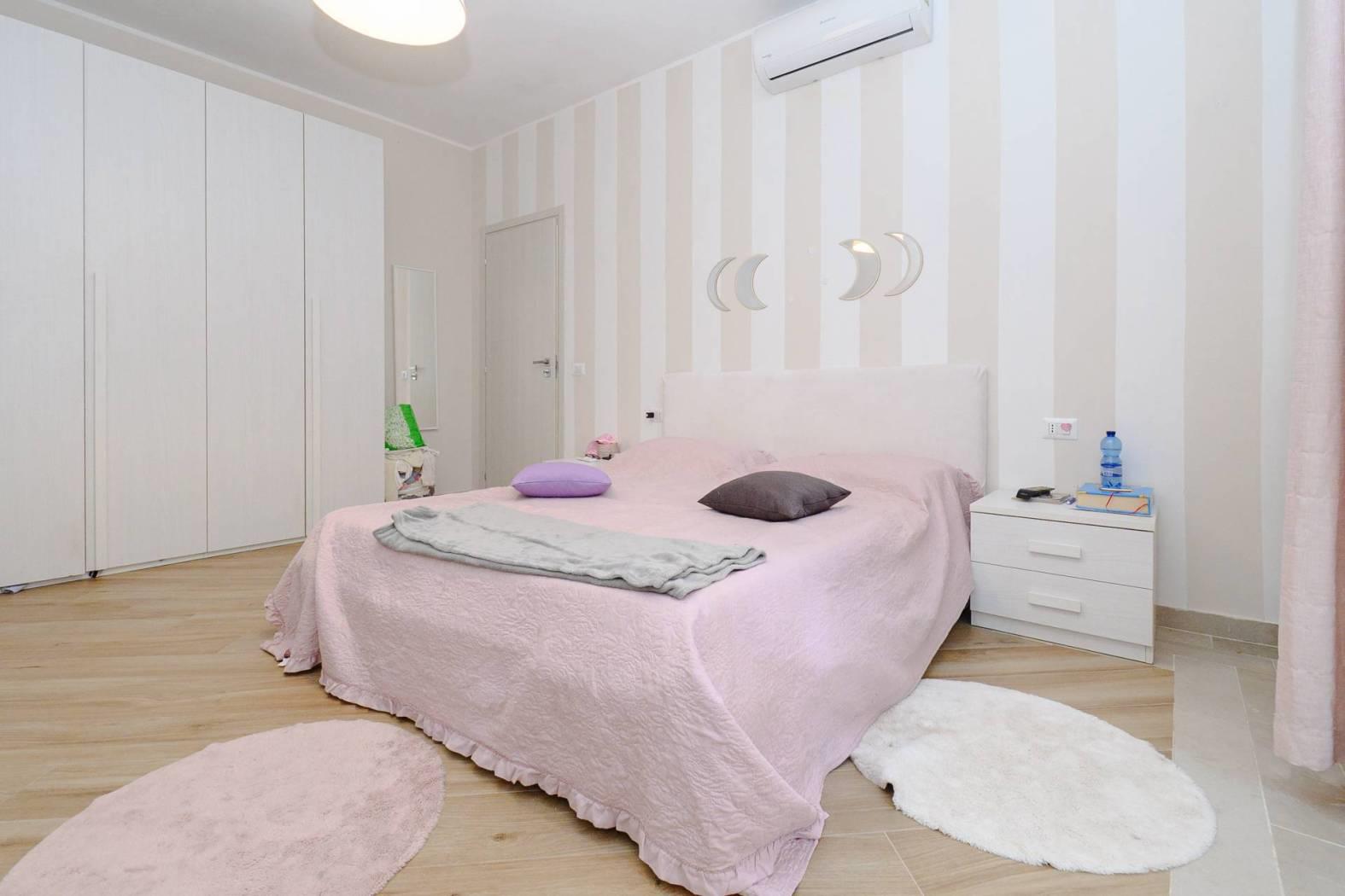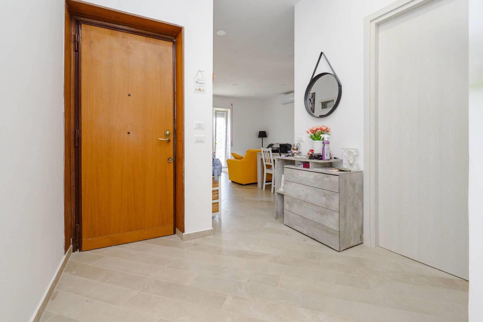 Internamente si compone da ingresso, spazioso living con cucina a vista, disimpegno con ripostiglio attrezzato come lavanderia, camera matrimoniale, seconda camera da letto, bagno con finestra ed impianto doccia, due balconi.