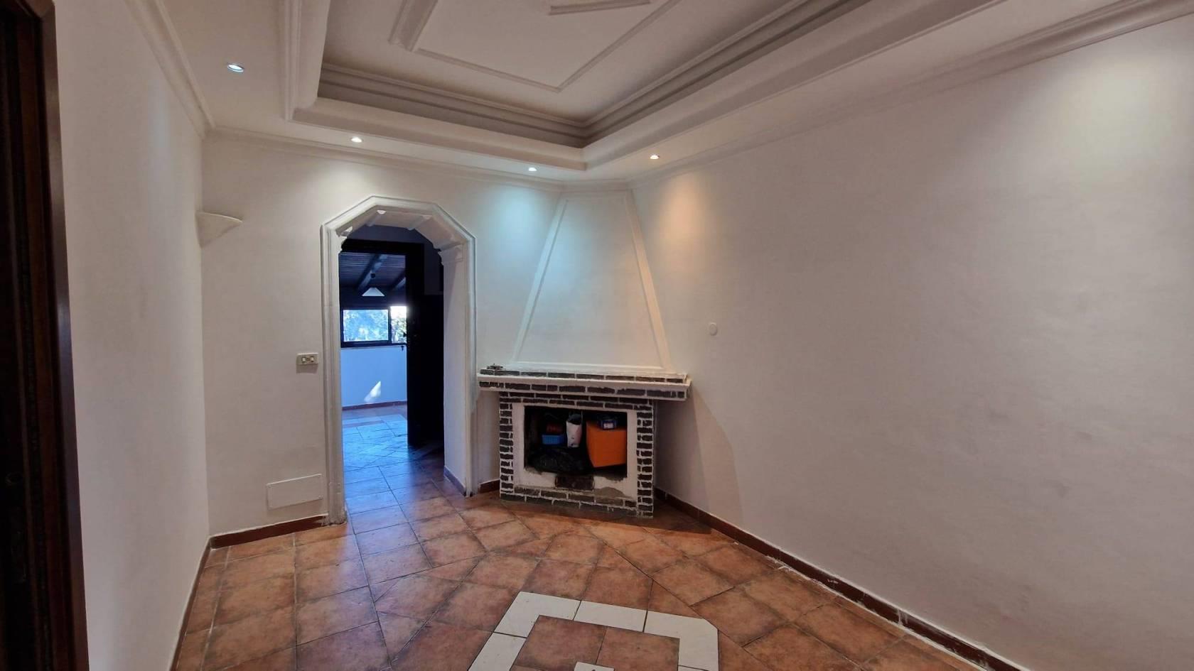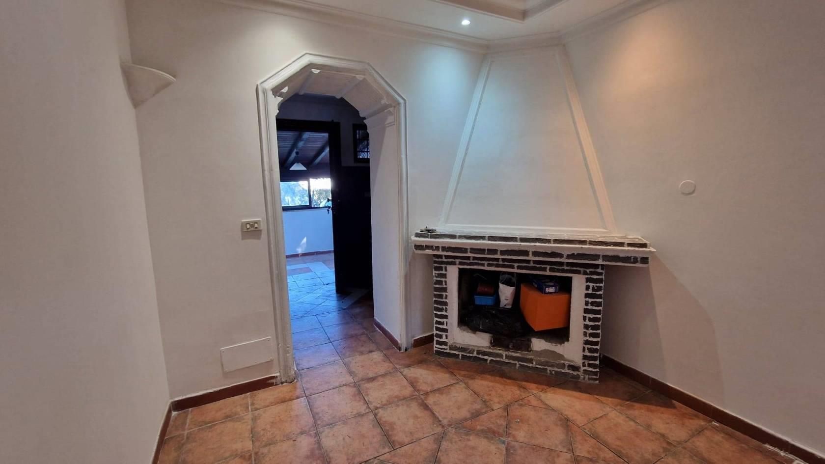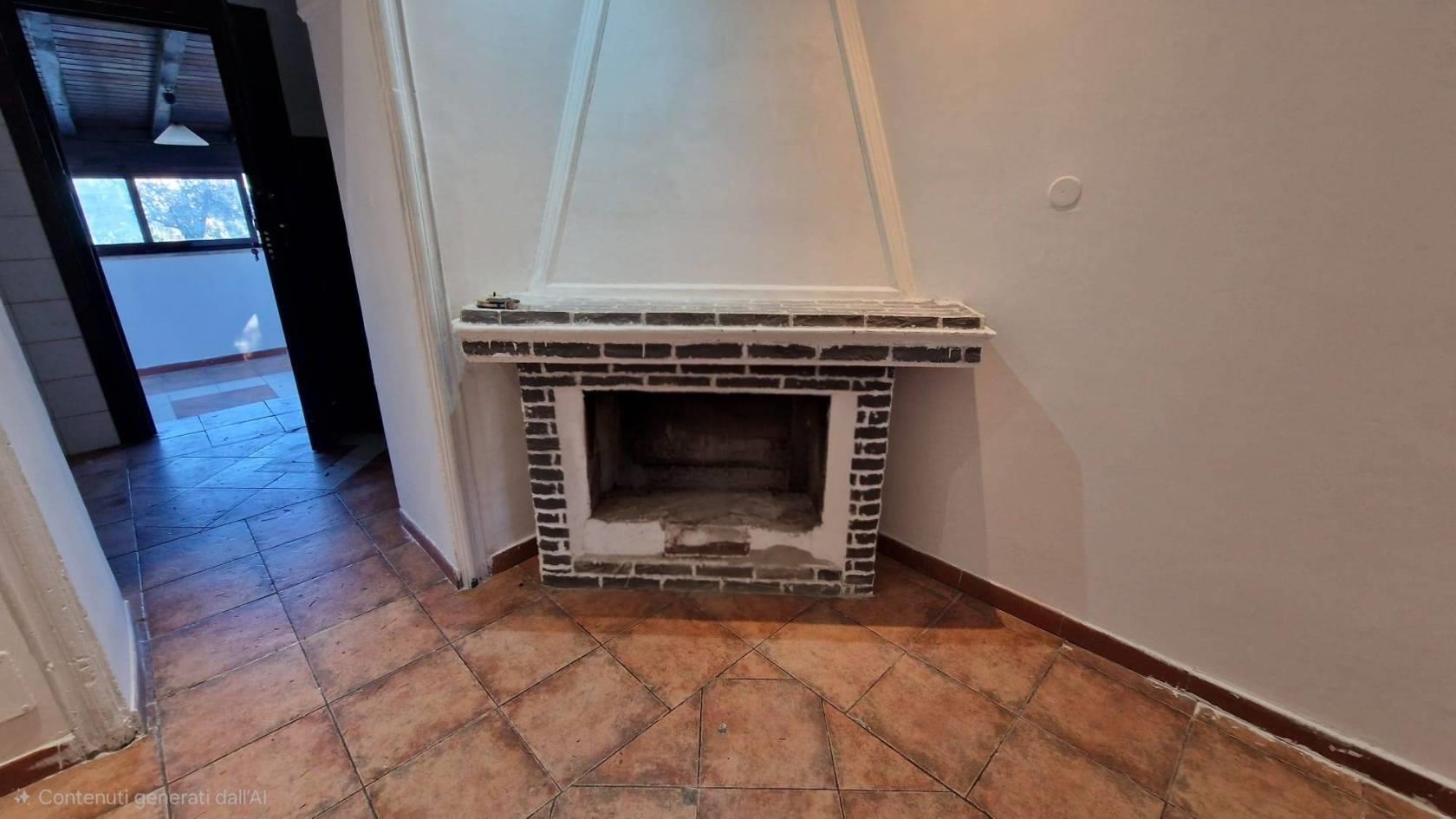 • Zona Giorno: L'ingresso apre su un salotto, impreziosito da un camino che funge da fulcro visivo e termico della casa, creando un'atmosfera calda e familiare.
