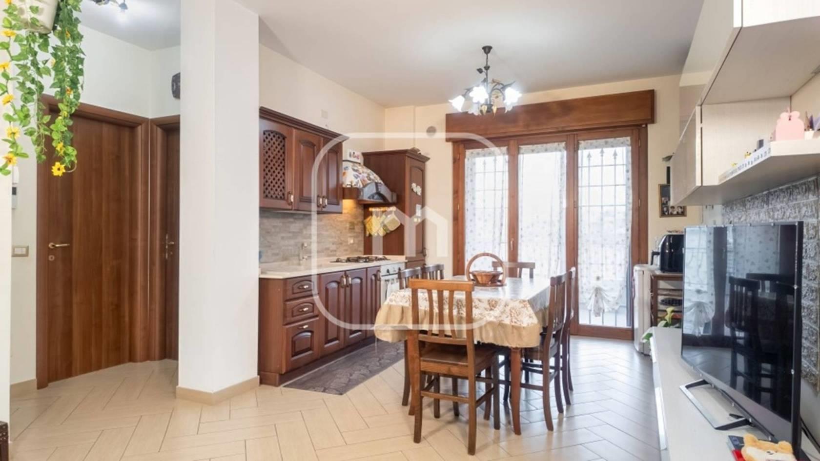 Zona Giorno: Luminoso salone con angolo cottura e accesso diretto al terrazzo abitabile, ideale per momenti di relax all'aperto.