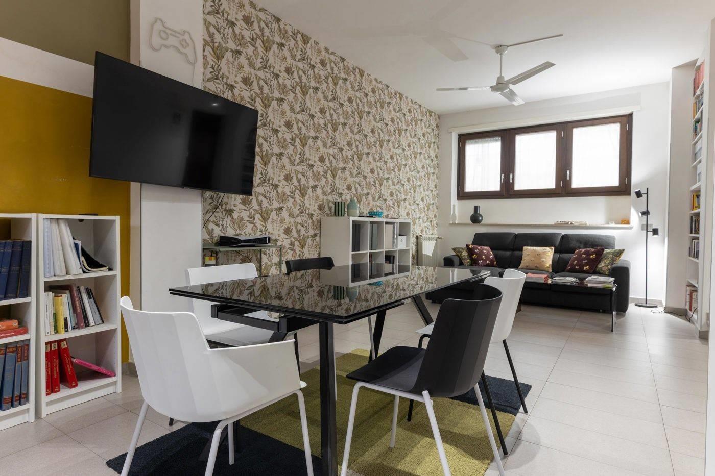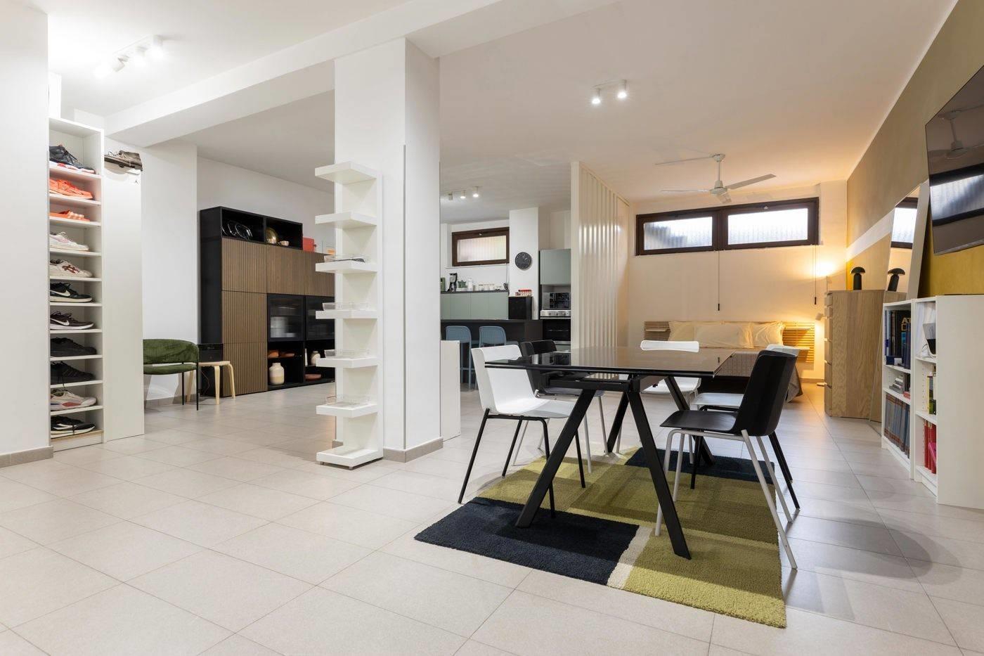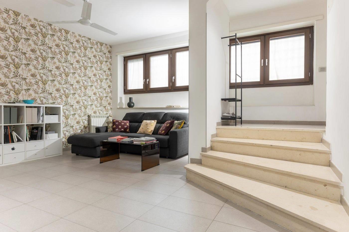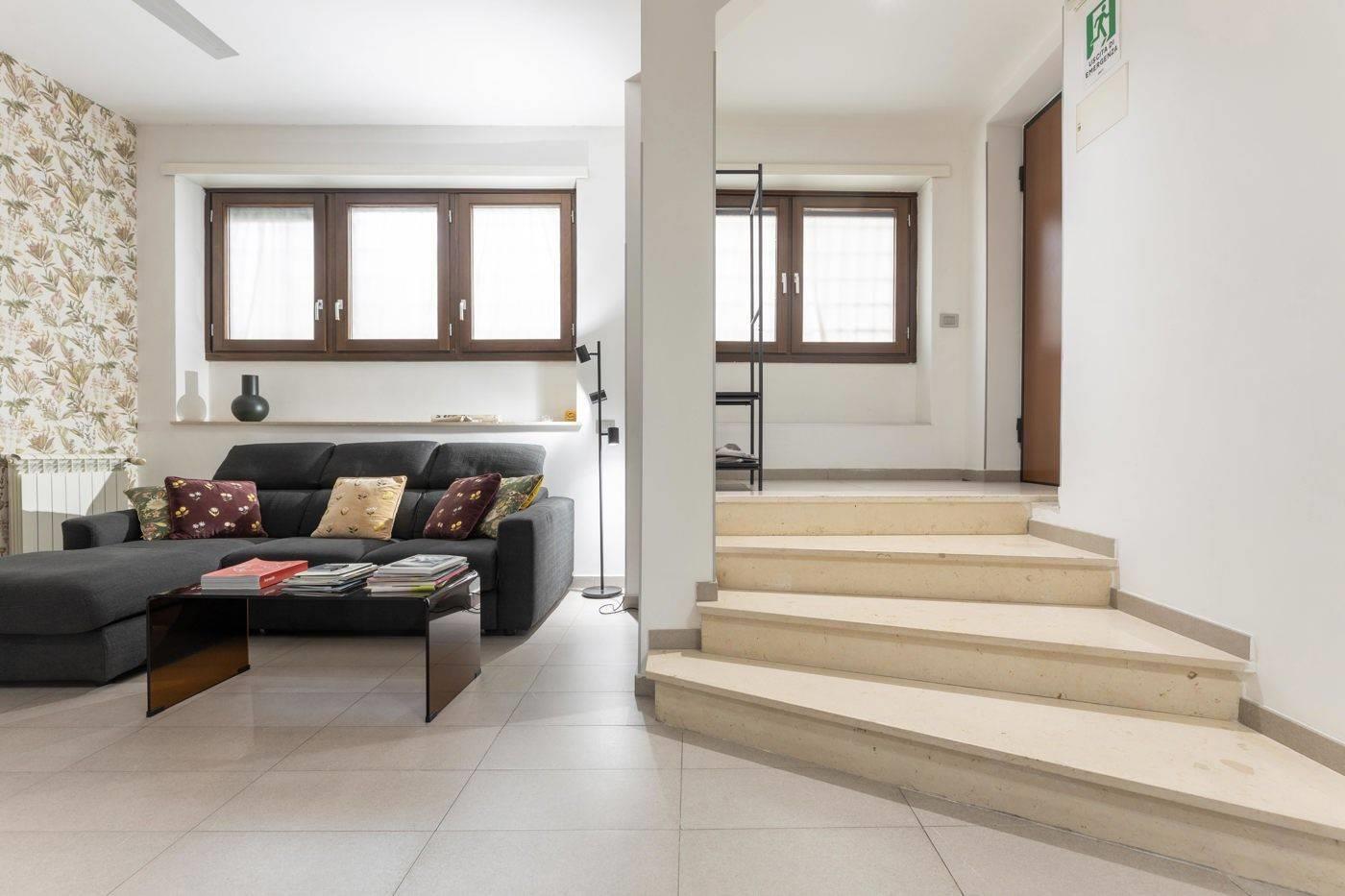 L’appartamento usufruisce di riscaldamento autonomo, pannelli solari centralizzati, termoarredo nell’ampio bagno, pale meccaniche al soffitto dell’open space, luci d’emergenza, infissi automatizzati in legno doppiovetro e portoncino blindato.