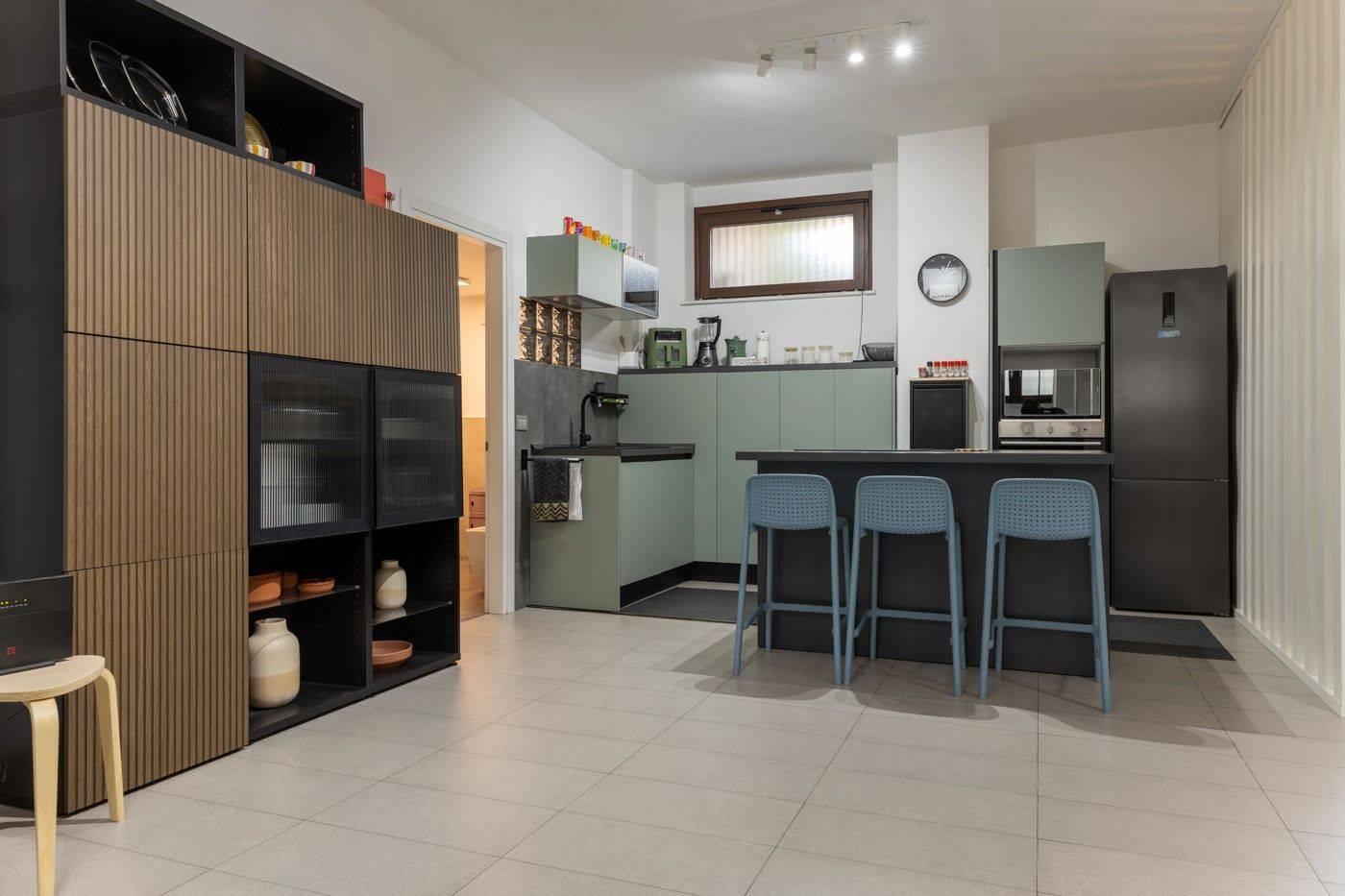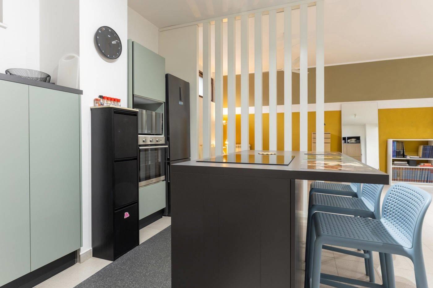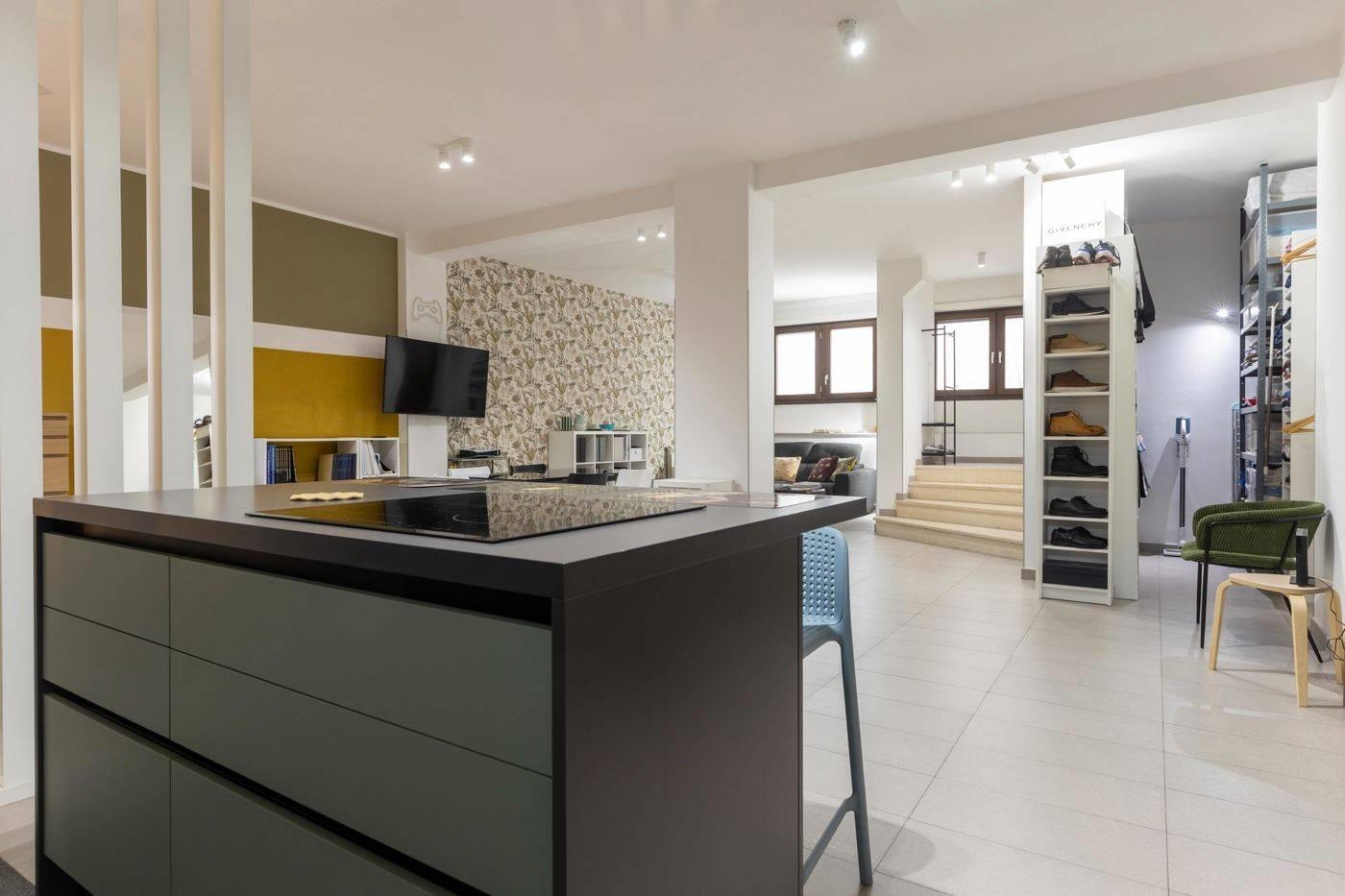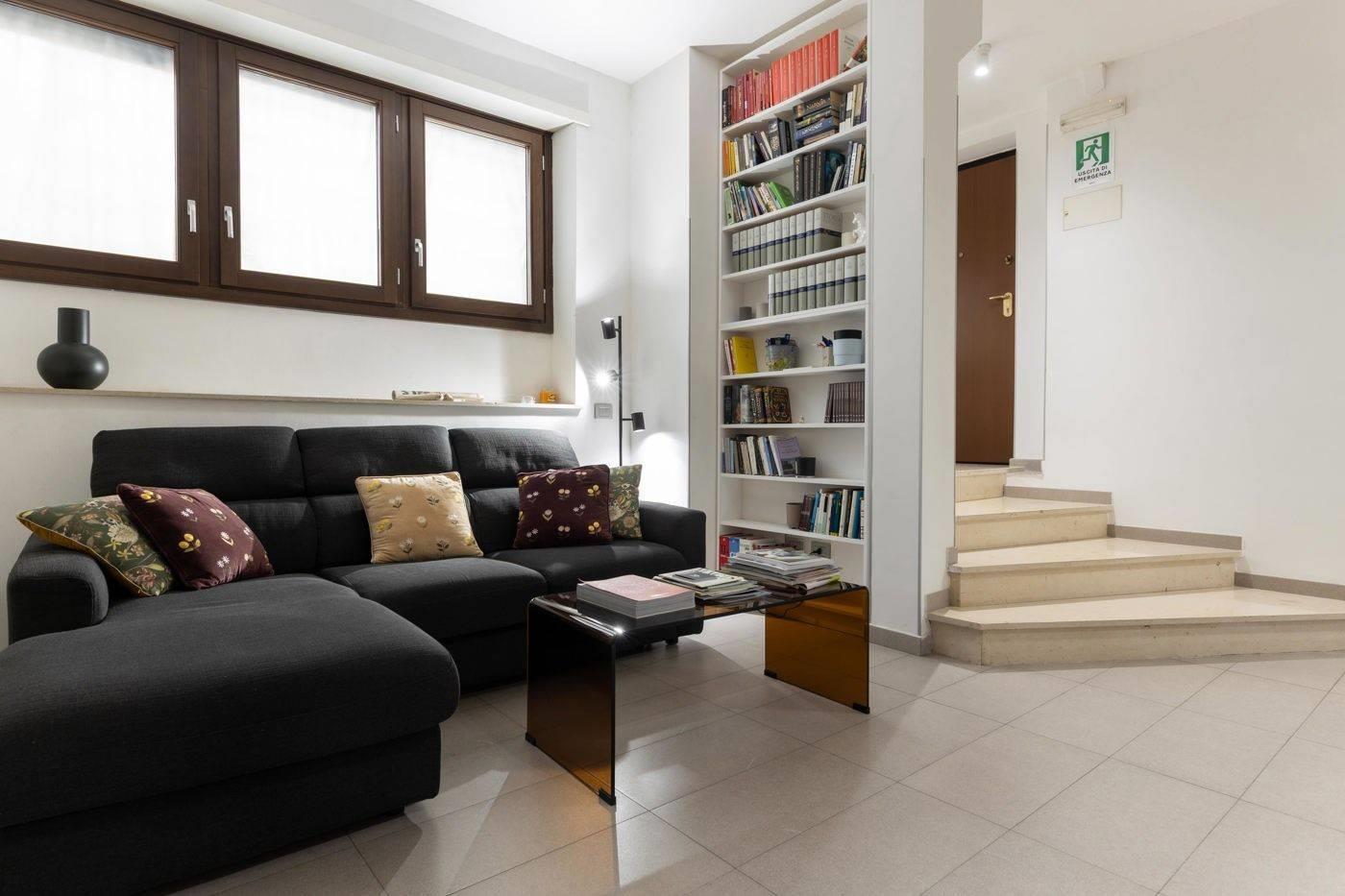 L’appartamento usufruisce di riscaldamento autonomo, pannelli solari centralizzati, termoarredo nell’ampio bagno, pale meccaniche al soffitto dell’open space, luci d’emergenza, infissi automatizzati in legno doppiovetro e portoncino blindato.
