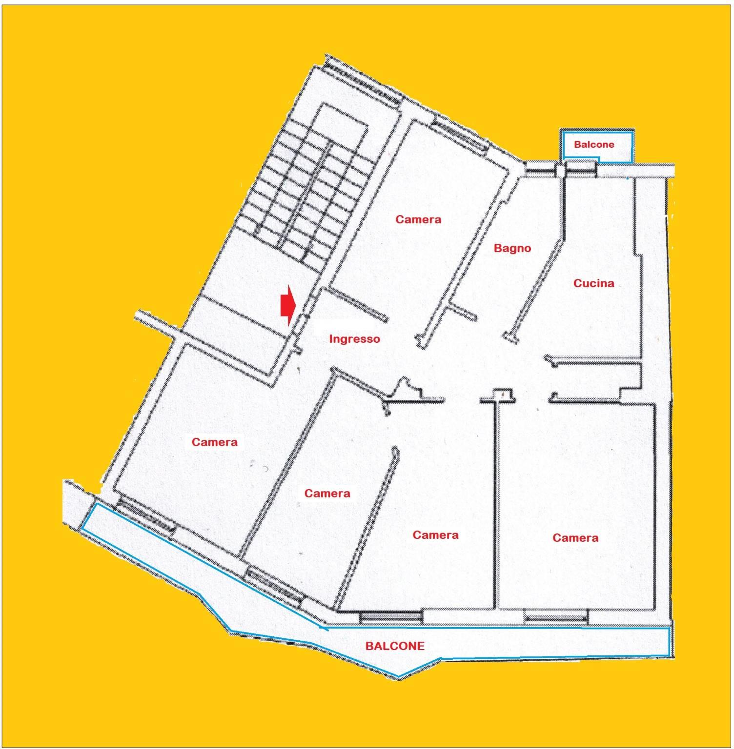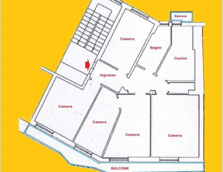 L’appartamento è da ristrutturare, offrendo la possibilità di una facile ridistribuzione degli ambienti per creare una zona living open-space o per ottimizzare il numero di stanze a fini ricettivi.