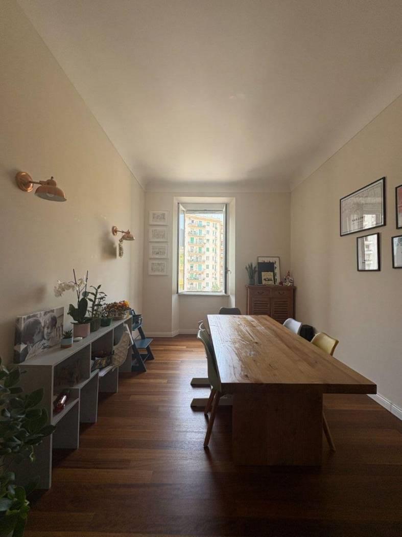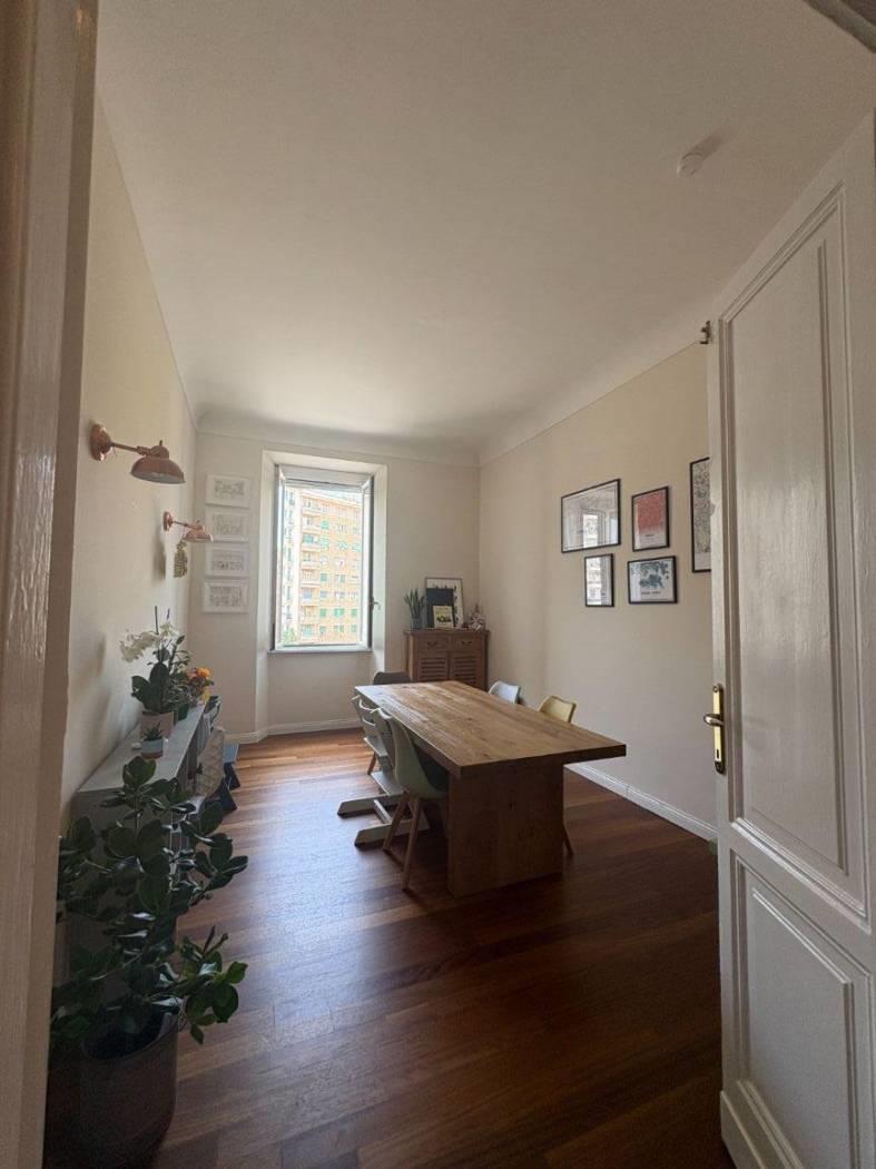 Libero da maggio, disponiamo di uno plendido appartamento di 130 mq situato al quarto piano di un elegante edificio dotato di ascensore. Ristrutturato solo tre anni fa, l'immobile presenta finiture moderne e un raffinato parquet in tutti gli ambienti. L'ampio ingresso conduce a una cucina arredata a vista, perfetta per chi ama cucinare e socializzare, e a un soggiorno luminoso che offre un'atmosfera accogliente e rilassante.