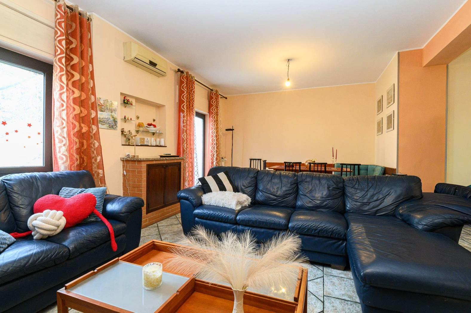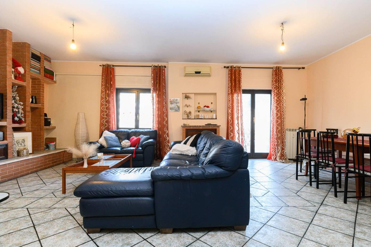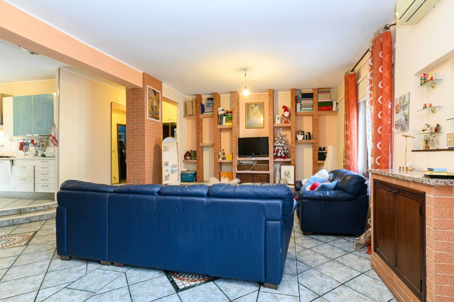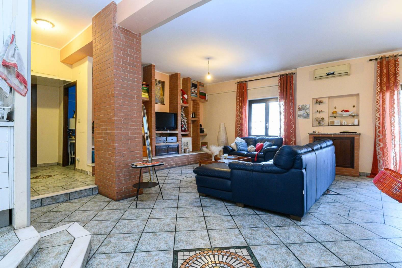 L'immobile si presenta in buono stato, sono stati rifatti circa 10 anni fa sia gli infissi con vetrocamera in PVC sia i rivestimenti: i pavimenti sono in gres porcellanato di colore grigio. Nella ristrutturazione sono stati inseriti degli elementi di muratura quali una parete Tv/libreria, panche e penisola nella cucina, inoltre sono stati creati dei giochi di scalini per rendere l'immobile più movimentato.