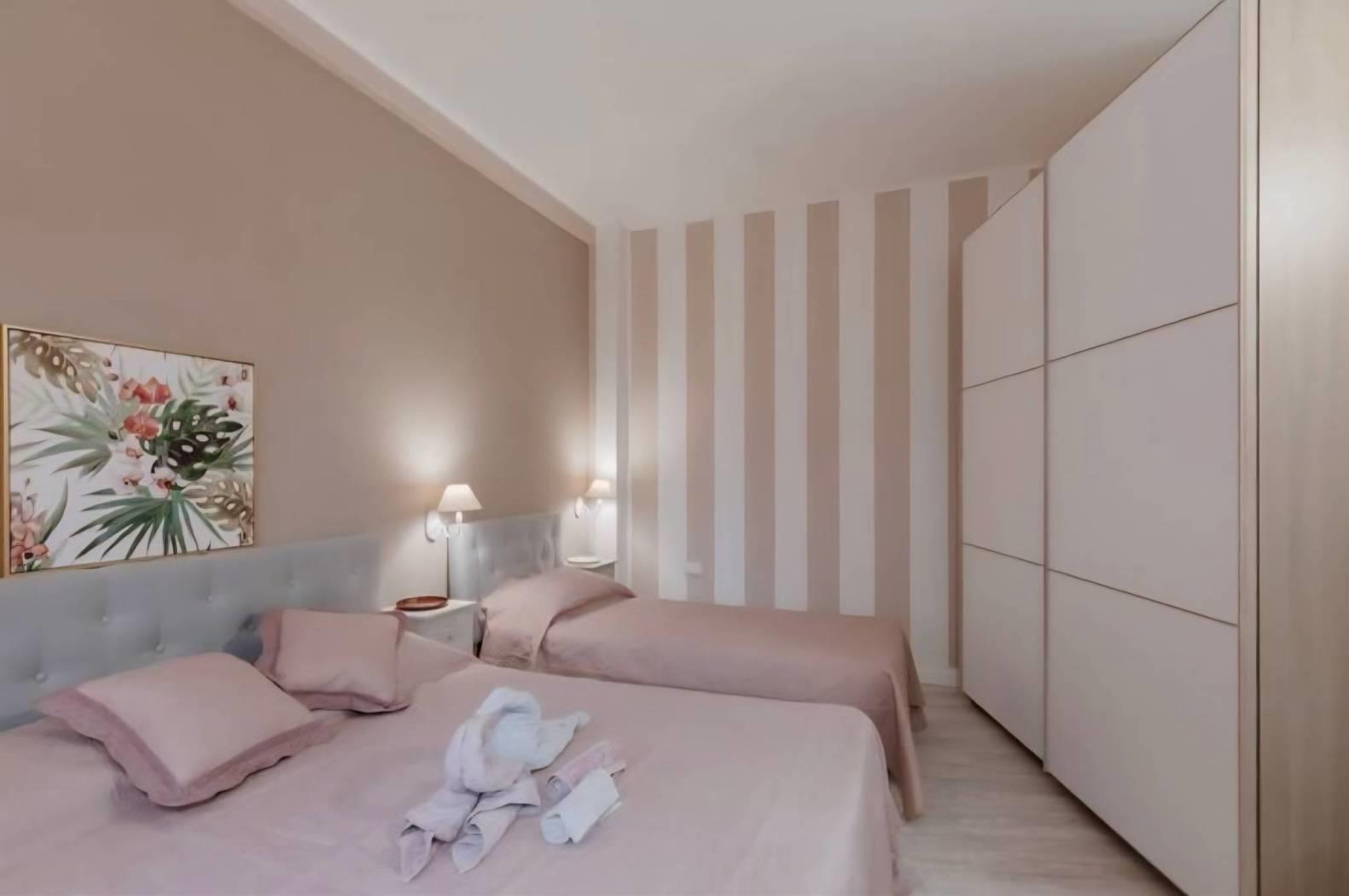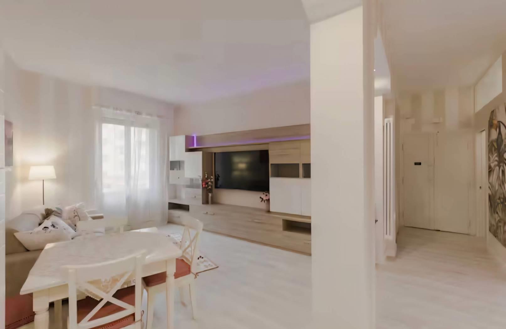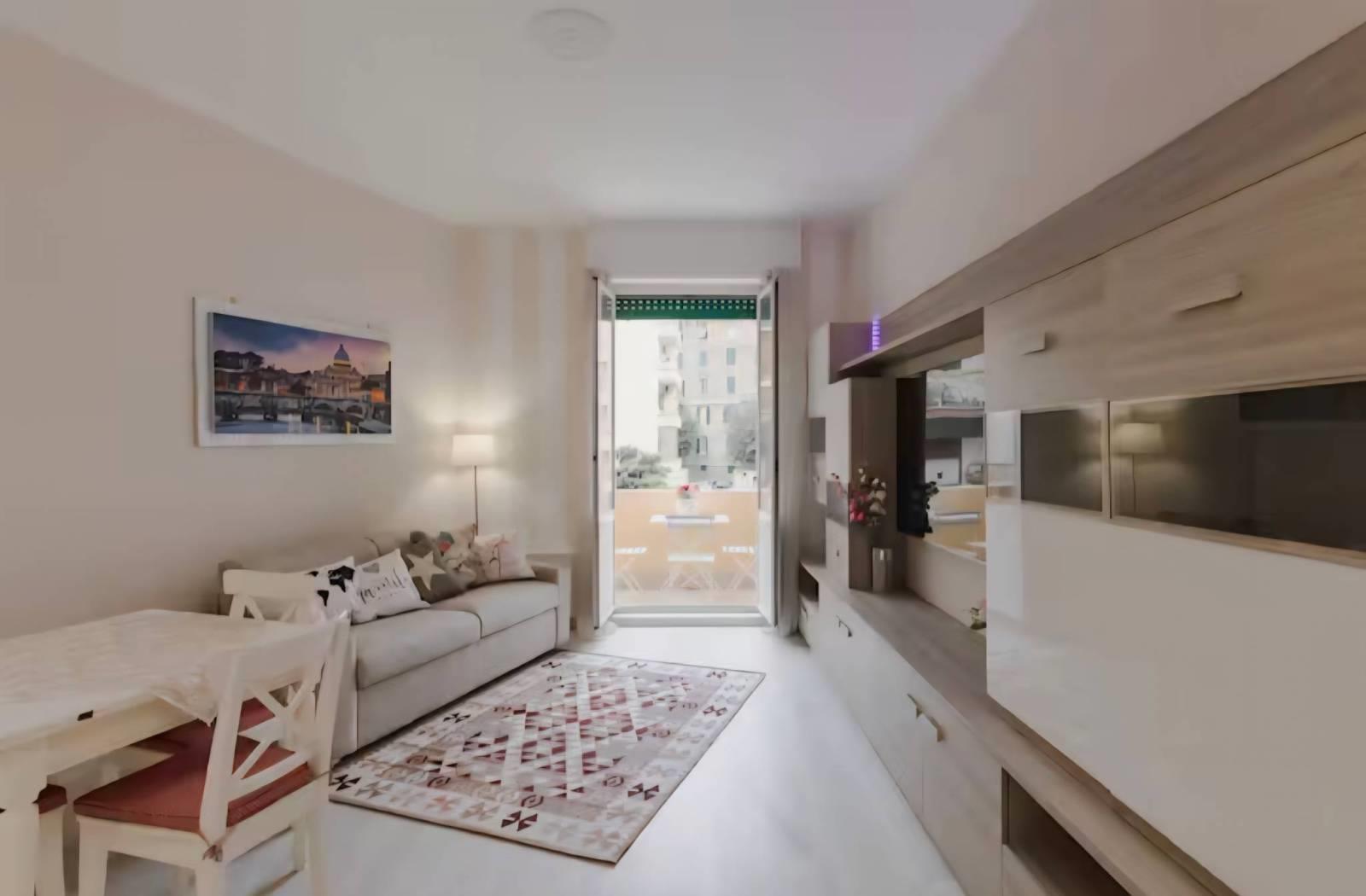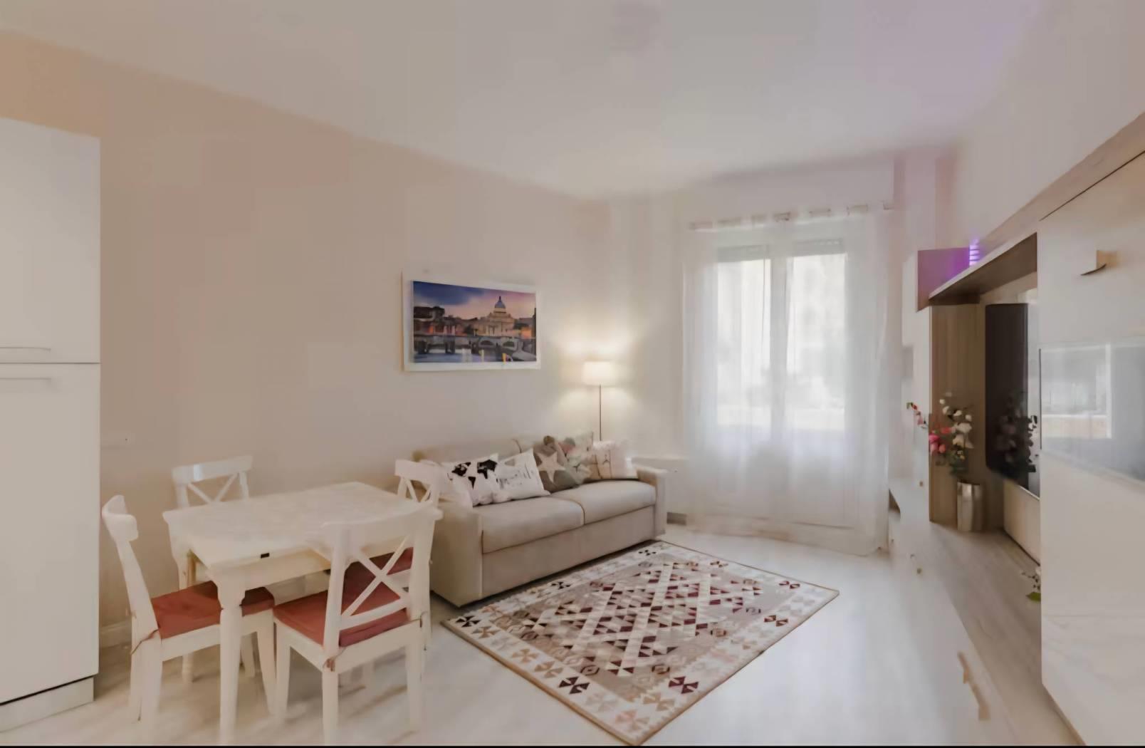 San Pietro, adiacente via delle Fornaci, 4° piano, luminoso, doppia esposizione, ingresso, soggiorno con angolo cottura, camera, cameretta, 3 bagni, 2 balconi, finemente ristrutturato con possibilità arredato, pronto all'uso chiavi in mano, avviato come struttura ricettiva ad alto reddito.