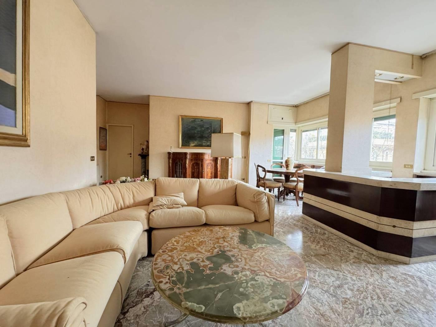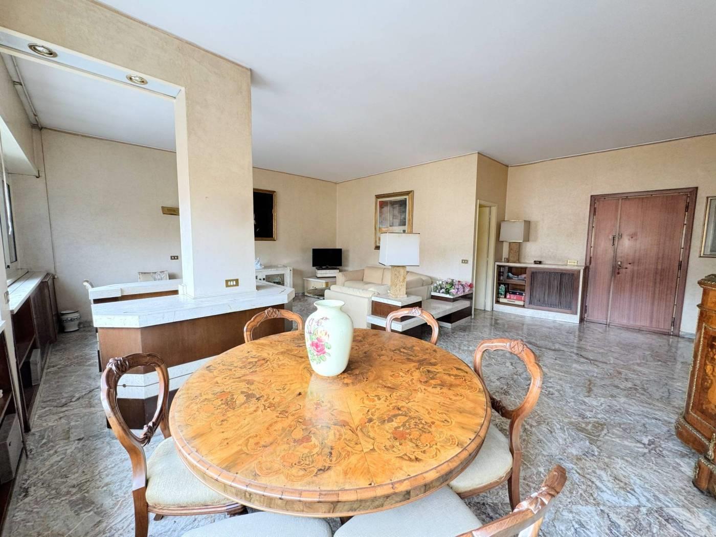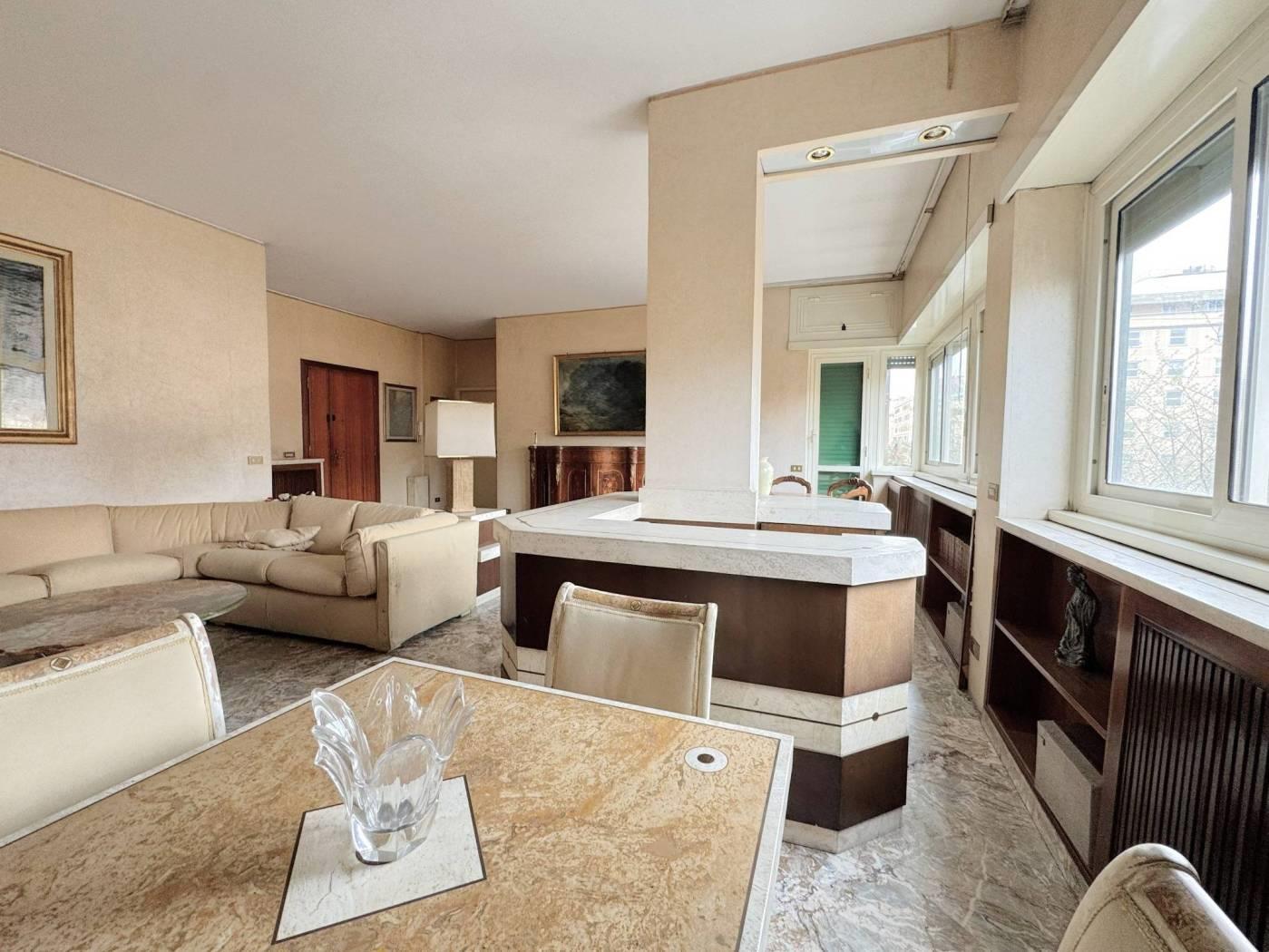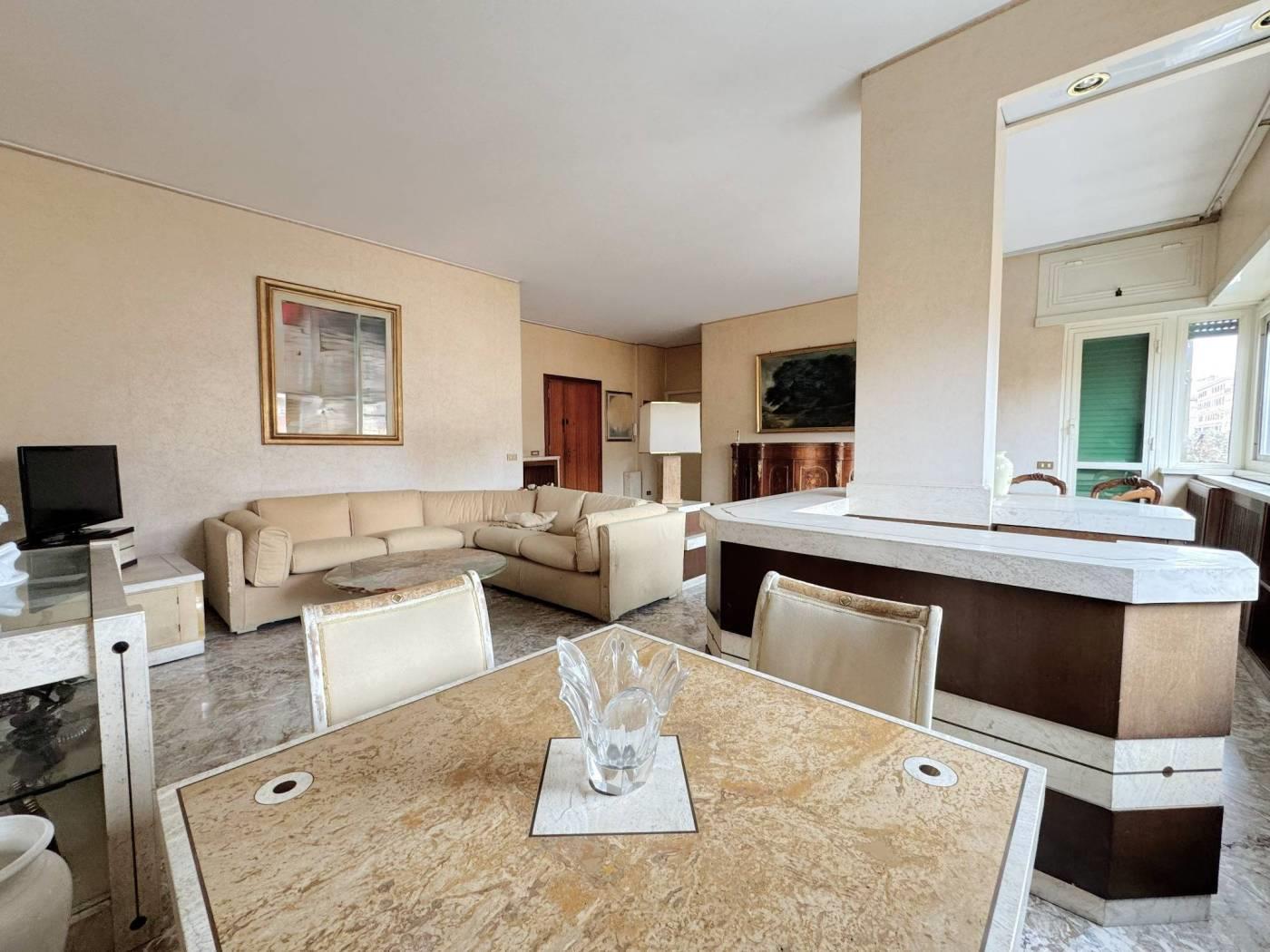 Elegante Appartamento in vendita - zona Esquilino. Nel cuore del rione Esquilino, a 300 metri dalla fermata metro Manzoni, e più precisamente in Via Santa Croce in Gerusalemme proponiamo in vendita un appartamento termoautonomo, posto al 3° piano di un palazzo di tipo medio signorile, edificato alla fine degli anni 50,rifinito in intonaco e provvisto di ascensore. L'immobile vanta una superficie di 153 mq catastali e si compone di un ampio ingresso, che introduce direttamente nella zona giorno in cui troviamo, un salone doppio di 40 mq caratterizzato da una parete totalmente finestrata e una grande camera adibita a studio. Dall' ingresso si accede anche ad un corridoio di disimpegno che permette di raggiungere due camere matrimoniali, una grande cucina abitabile, un bagno padronale di dimensioni generose dotato di una vasca e una camera di servizio con wc ad uso esclusivo. Completano la proprietà 3 balconi di cui due con piacevole affaccio esterno sulla via, aventi accesso dallo studio e dal salone/camera, il terzo a servizio della cucina con affaccio nella corte interna. L'appartamento risulta molto luminoso, si presenta in discreto stato complessivo, ed è dotato di porta d'ingresso blindata, infissi a taglio termico con doppio vetro, serrande elettriche nel salone, inferriate di sicurezza a protezione delle finestre che affacciano sulla corte interna, impianto di riscaldamento e produzione dell' acqua calda autonomo con caldaia recentemente sostituita, pavimentazione rivestita in pregevole marmo nella zona di rappresentanza e svariate opere di falegnameria realizzate su misura. La proprietà gode di una doppia esposizione: il salone e tutte le camere più grandi affacciano verso est con una piacevole veduta aperta sui villini di Via Santa Croce in Gerusalemme, la cucina e i servizi espongono verso ovest in una corte interna. Sono stati deliberati lavori di ristrutturazione riguardanti tutte le facciate del fabbricato, il cui costo verrà totalmente saldato dal venditore.