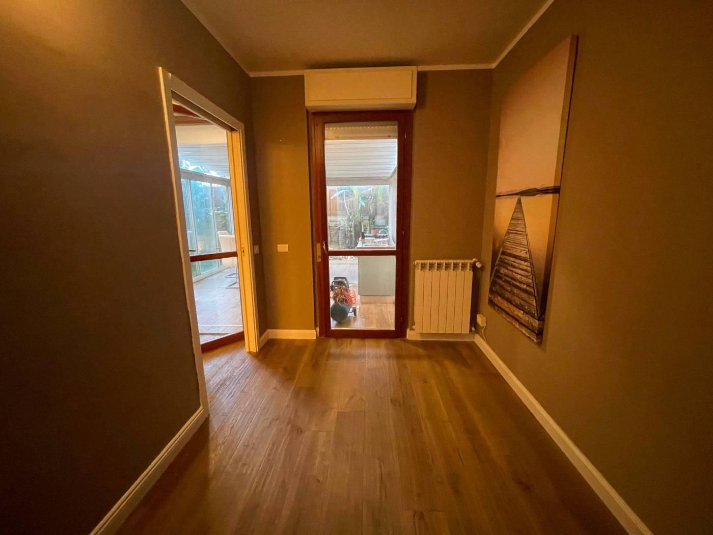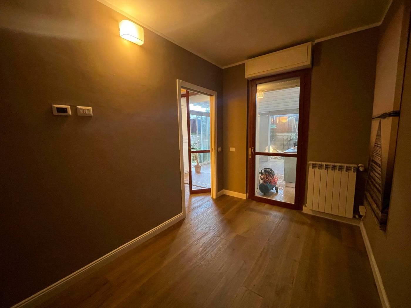 proponiamo in vendita in zona Selva Candida e piu precisamente in Via Pallanza in stabile a cortina di recente costruzione con videocitofono grazioso appartamento posto al piano terra completamente ristrutturato con ottima vivibilita', dotato di giardino con veranda in alluminio amovibile, che rappresenta un grande sfogo per la gestione degli ospiti e di una vita moderna. Si presenta come un soggiorno con angolo cucina camera bagno e giardino climatizzato dotato di cantina e posto auto coperto di proprieta' con cancello automatizzato. Euro 139.000