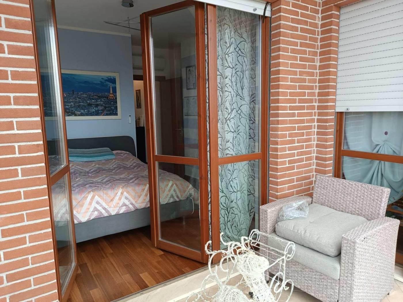 Completano la proprietà un box auto di 15 mq e una cantina. L'immobile è dotato di riscaldamento condominiale, pannelli solari, climatizzatori, parquet ed è in classe energetica C. Viene venduto completamente arredato, pronto da vivere.