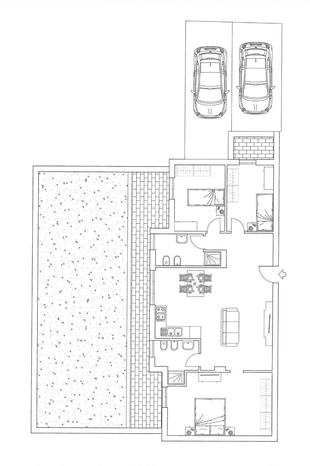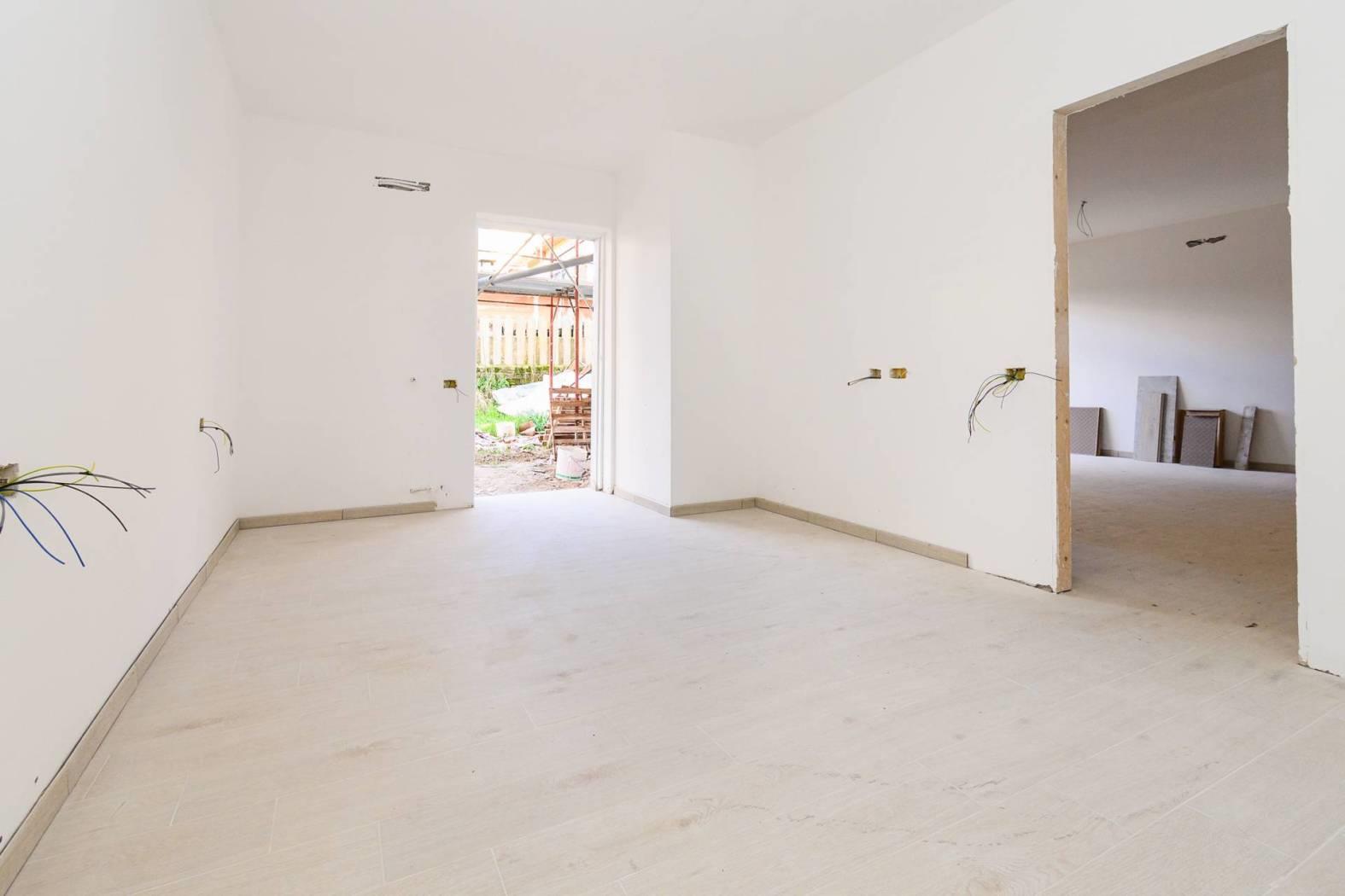Nel dettaglio, l'appartamento è posto al piano terra e si componde di salone con angolo cottura, camera padronale, due camere da letto, doppi servizi entrambi con finestra, giardino di 100mq e doppio posto auto scoperto.