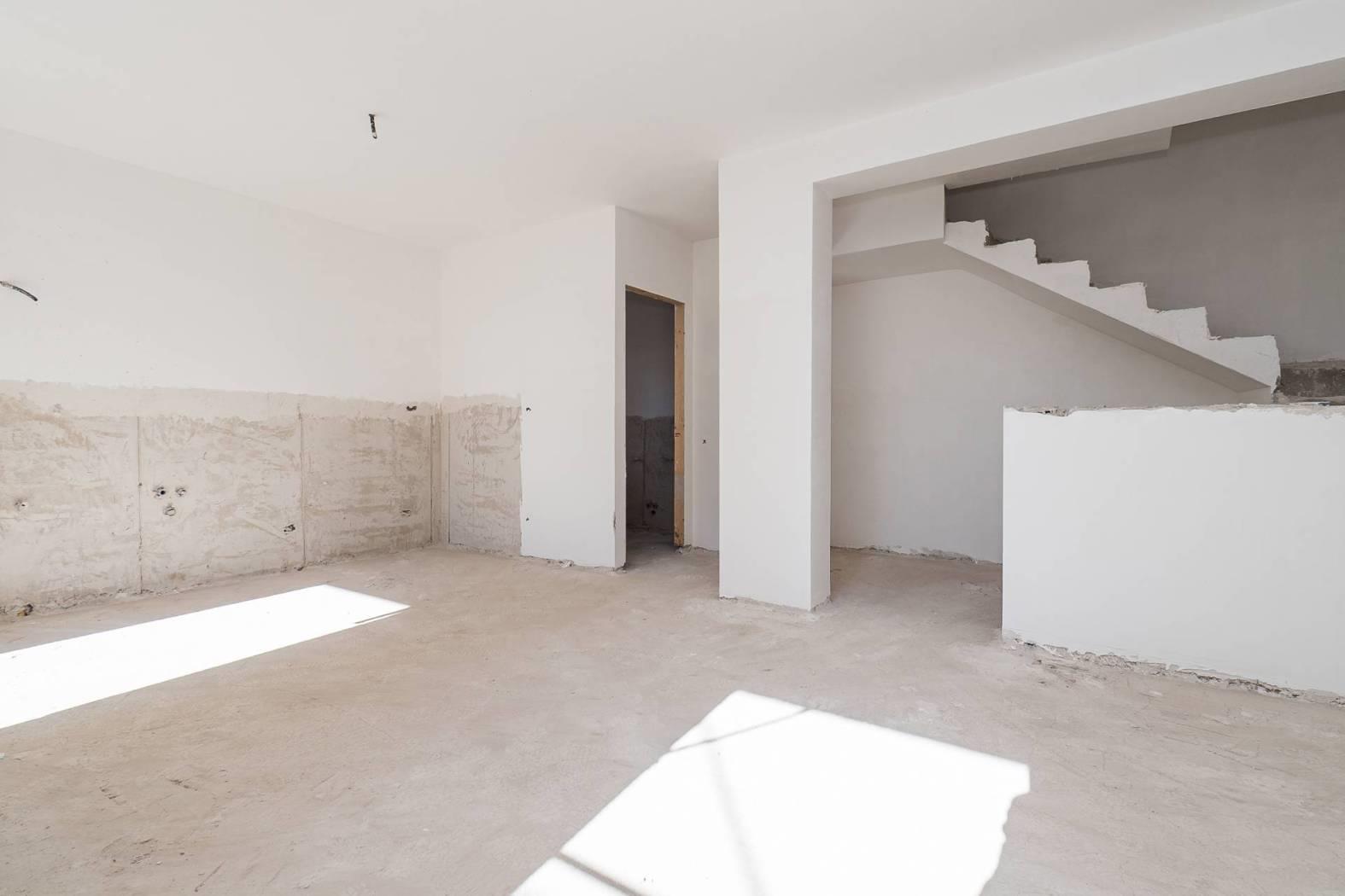 Al piano terra troviamo la zona giorno con salone ed angolo cottura e primo bagno con finestra; al secondo piano si sviluppa la zona notte con due camere da letto, secondo bagno con finestra e terrazzo.